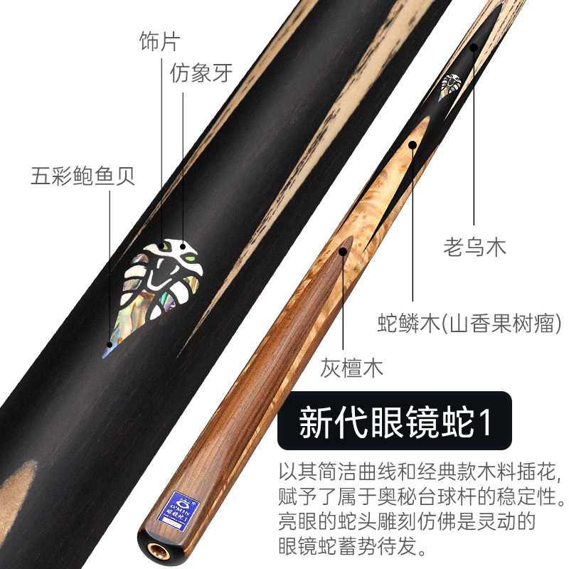 奥秘台球杆小头杆眼镜蛇通杆斯诺克桌球杆中式黑八专用官苏a球杆