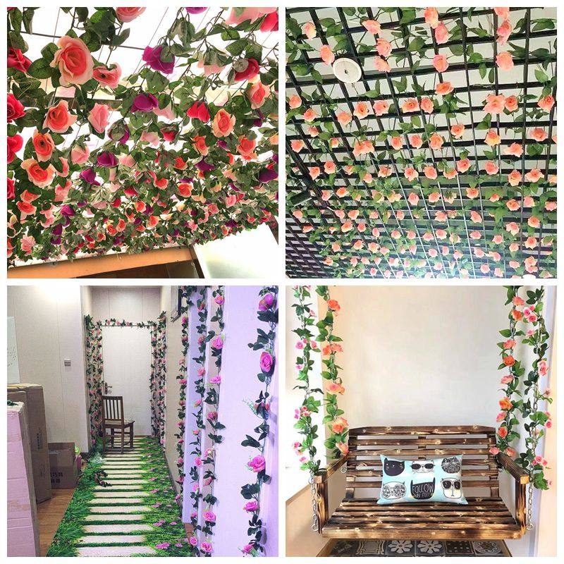 仿真玫瑰花藤条塑料假花藤蔓植物空调管道装饰花遮挡摆设吊顶墙面