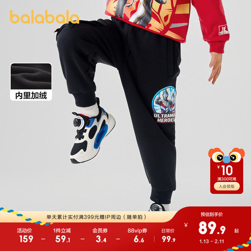 【奥特曼IP】巴拉巴拉男童长裤加绒冬新款束脚休闲裤