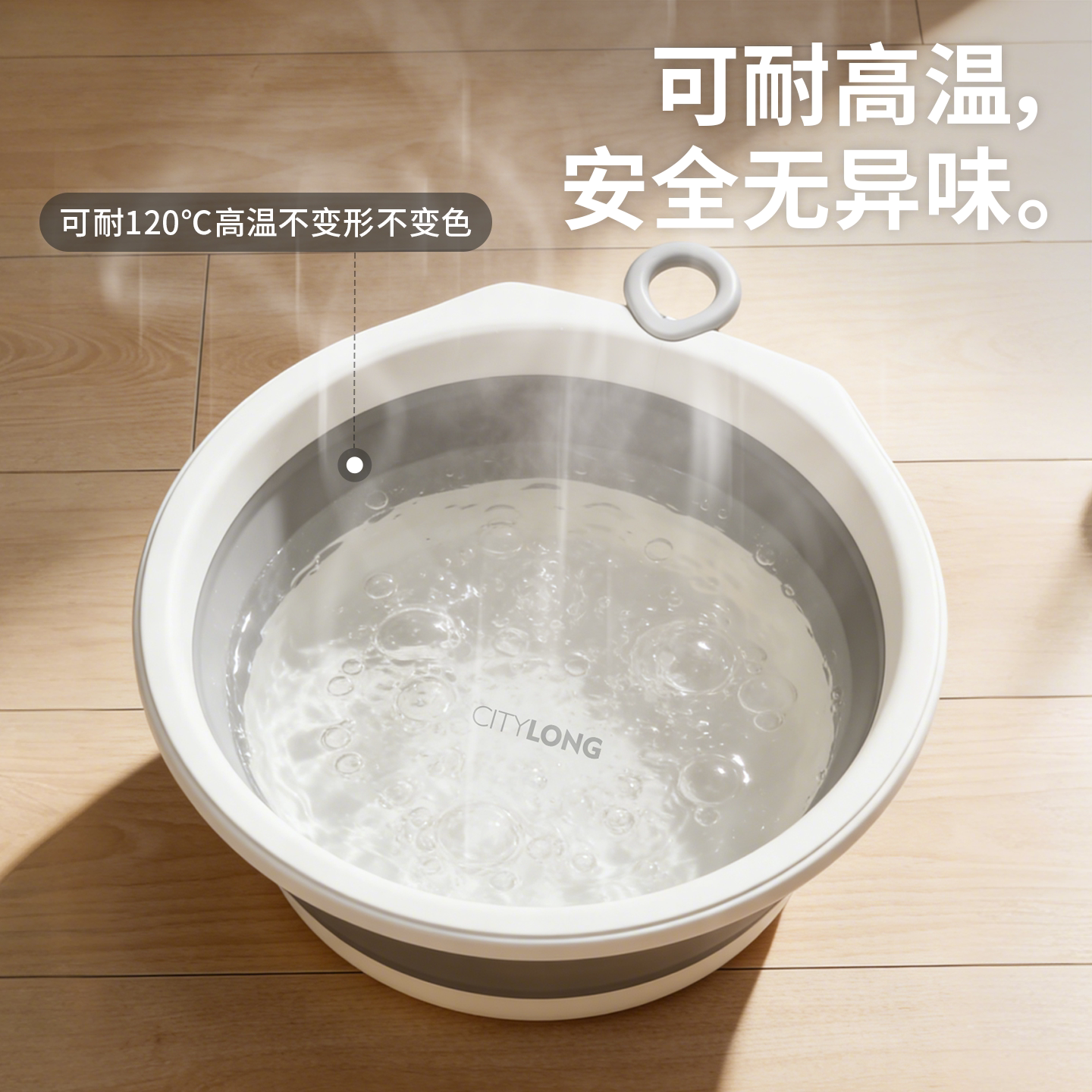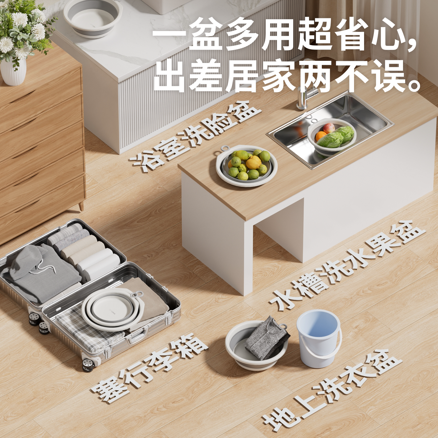 禧天龙折叠盆家用宝宝洗手泡脚水盆加厚塑料盆便携壁挂旅行洗脸盆