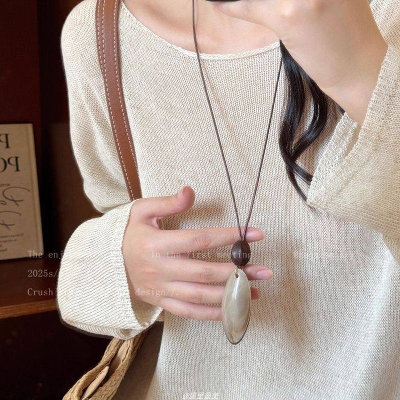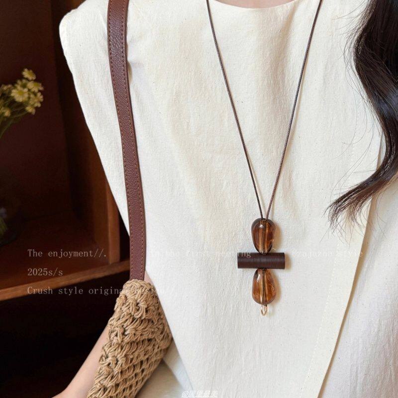 美拉德虎眼石长款毛衣链女款2025新款轻奢高级感项链秋冬装饰配饰