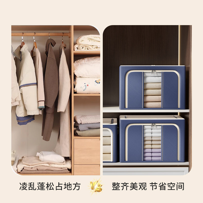 佳帮手衣服收纳箱家用装衣物被子百纳箱布艺可视窗衣柜专用整理箱