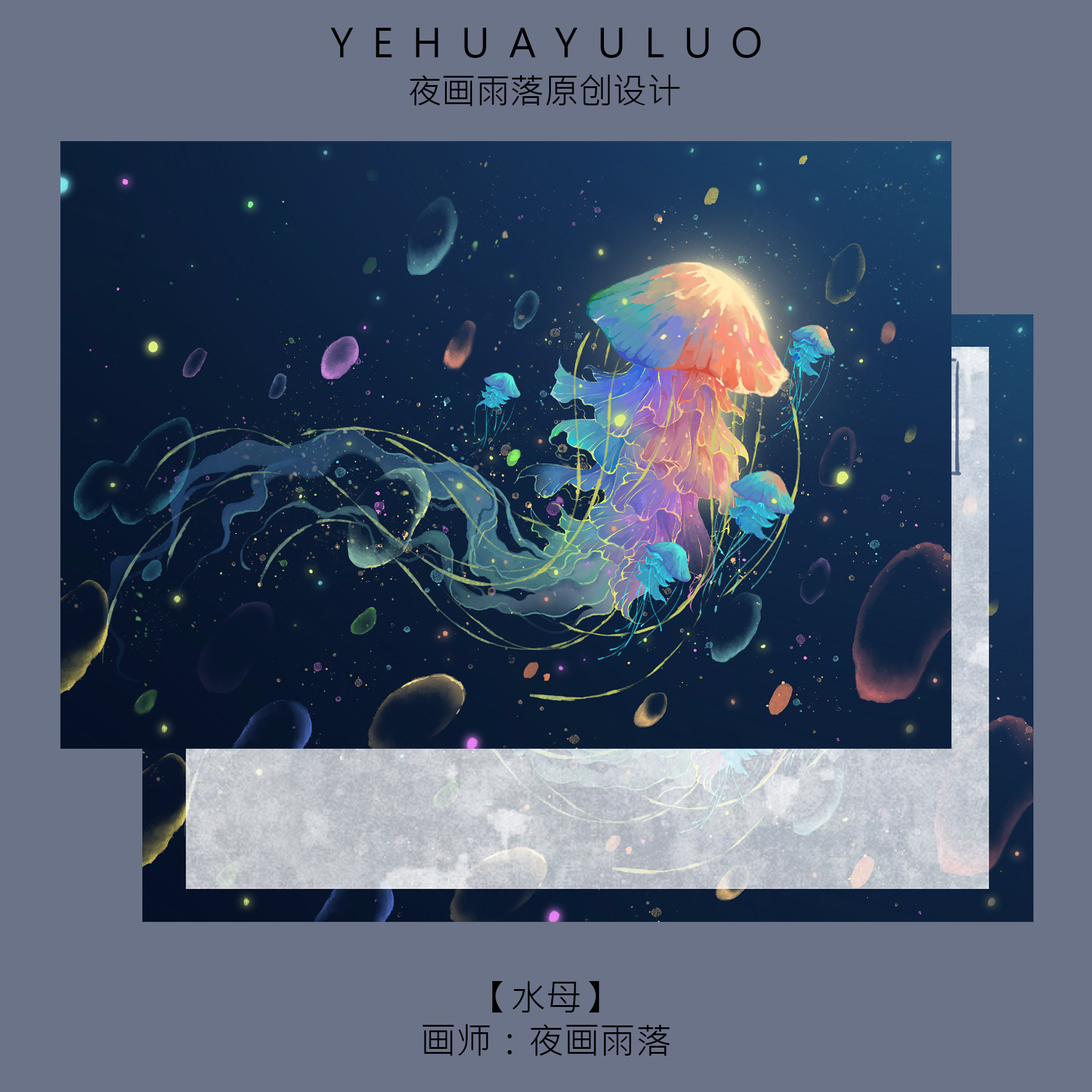 「水母」磨砂满天星夜画雨落插画卡片原创明信片礼物留言贺卡