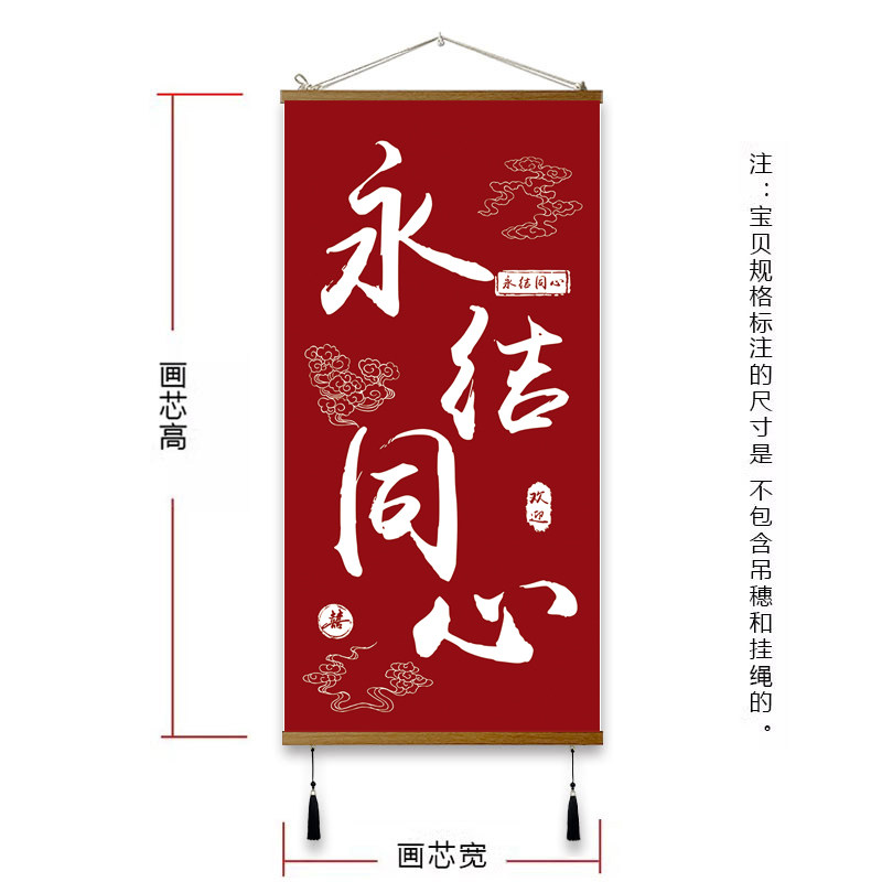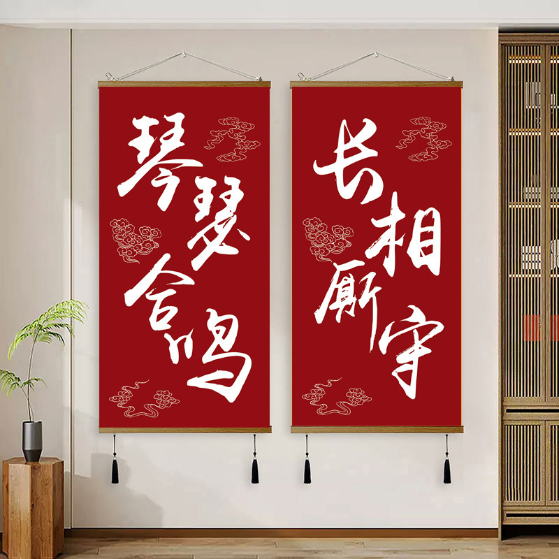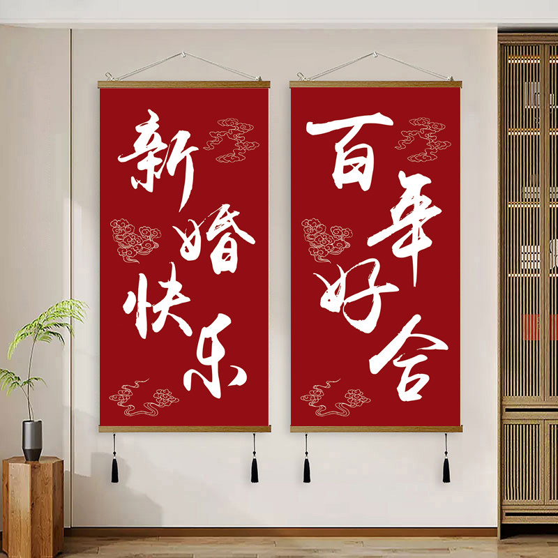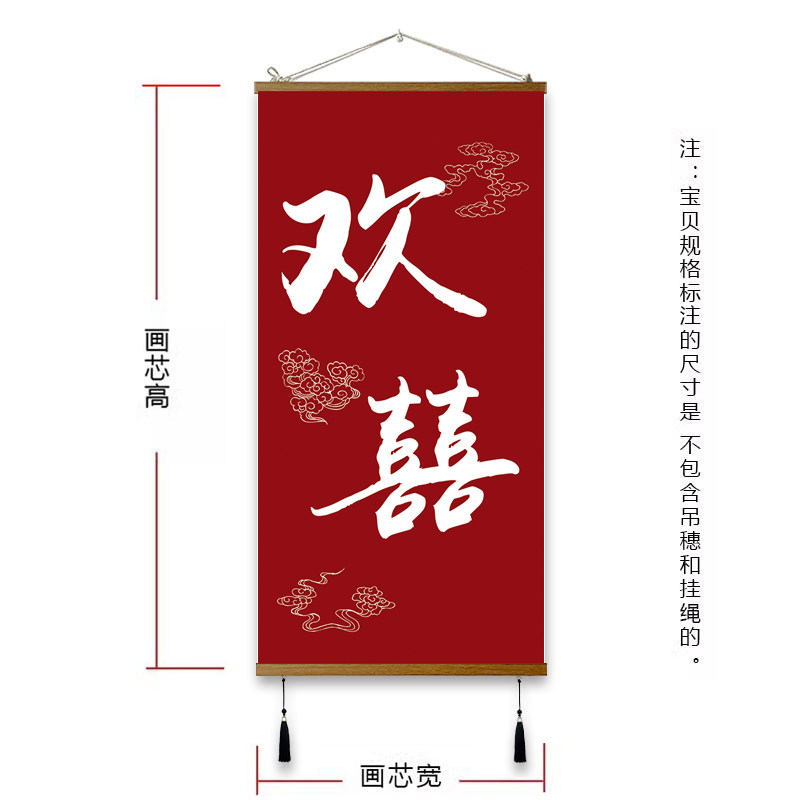 中式喜庆装饰画客厅卧室玄关欢喜挂画免打孔结婚房间氛围布置壁画