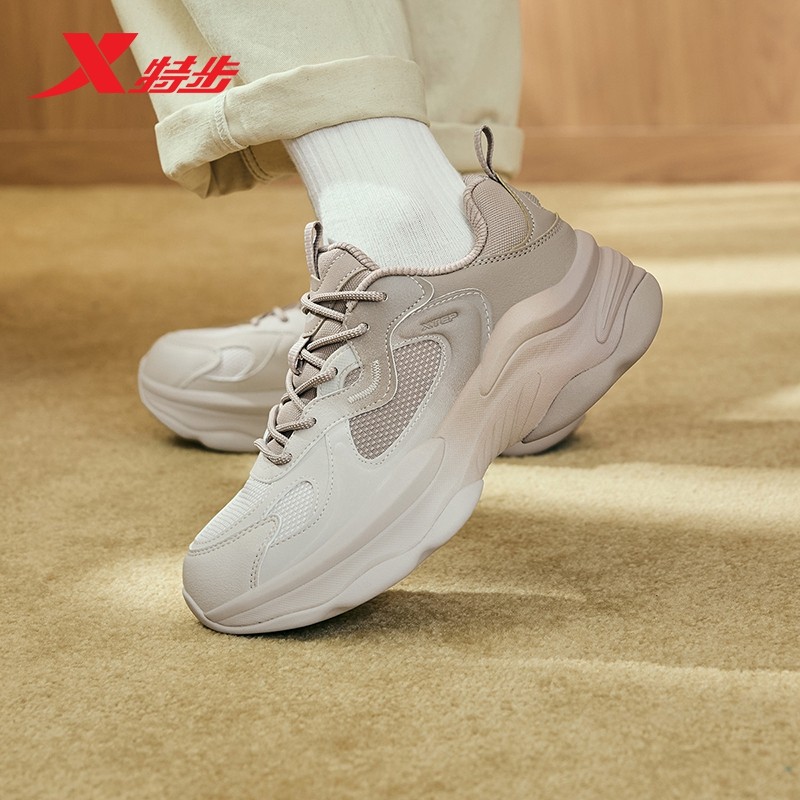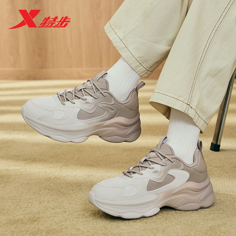 特步星火休闲鞋男鞋冬季革面轻便百搭厚底增高女鞋革网正品运动鞋
