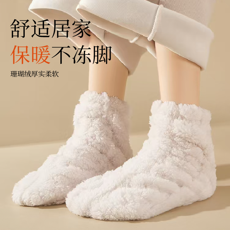 珊瑚绒袜子女冬季加厚加绒保暖地板袜睡眠月子袜秋冬新款睡觉袜子