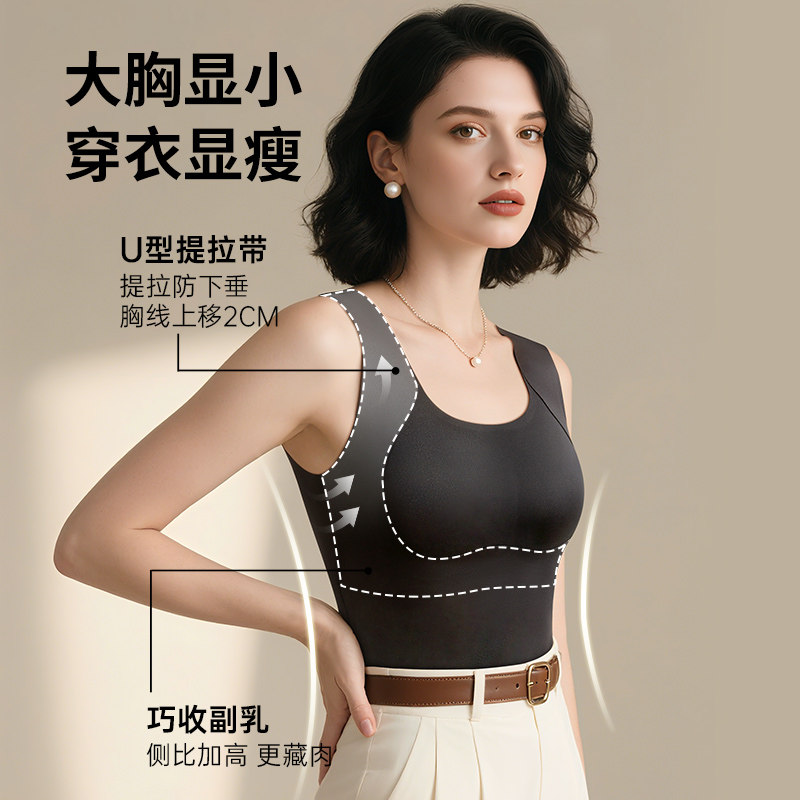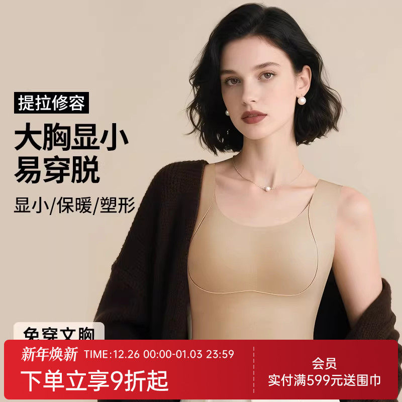 半练摇粒绒带胸垫保暖背心女装大胸显小纸片人内衣显瘦遮副乳上衣