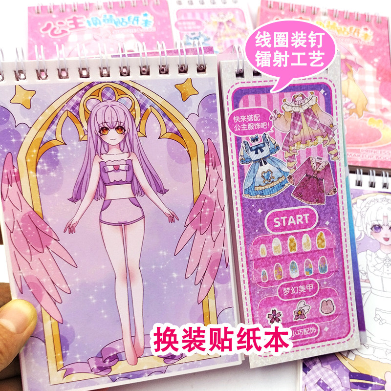 公主换装贴纸书儿童3到6岁女孩美妆化妆益智玩具美甲贴粘画涂色本