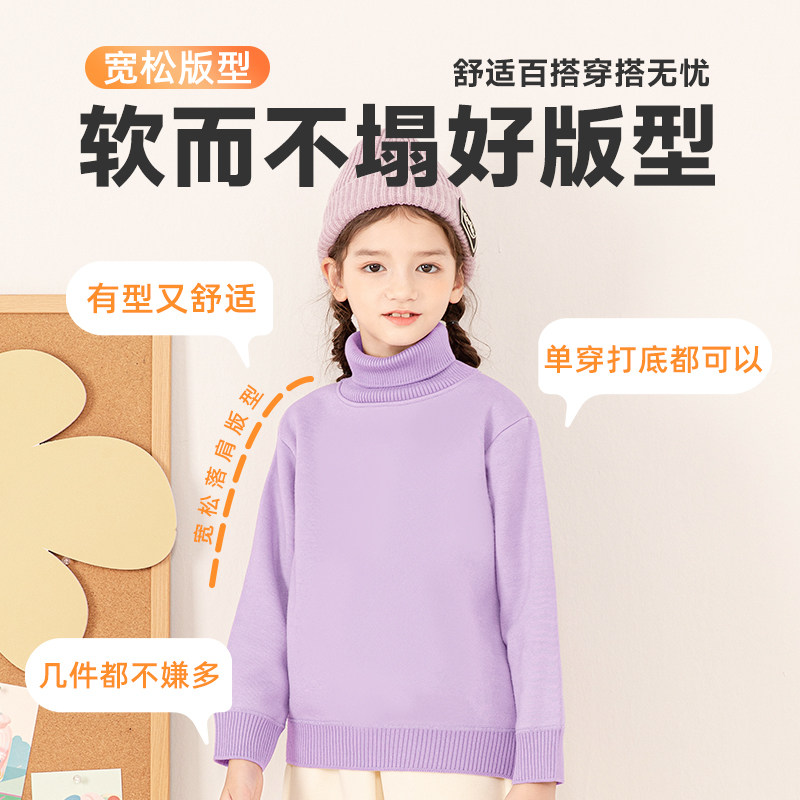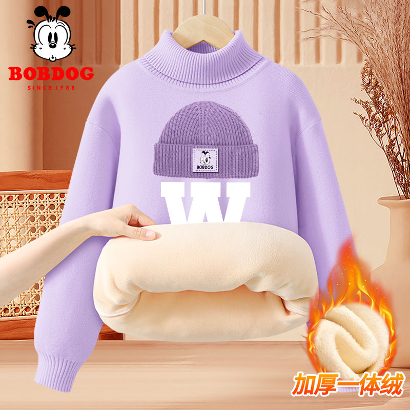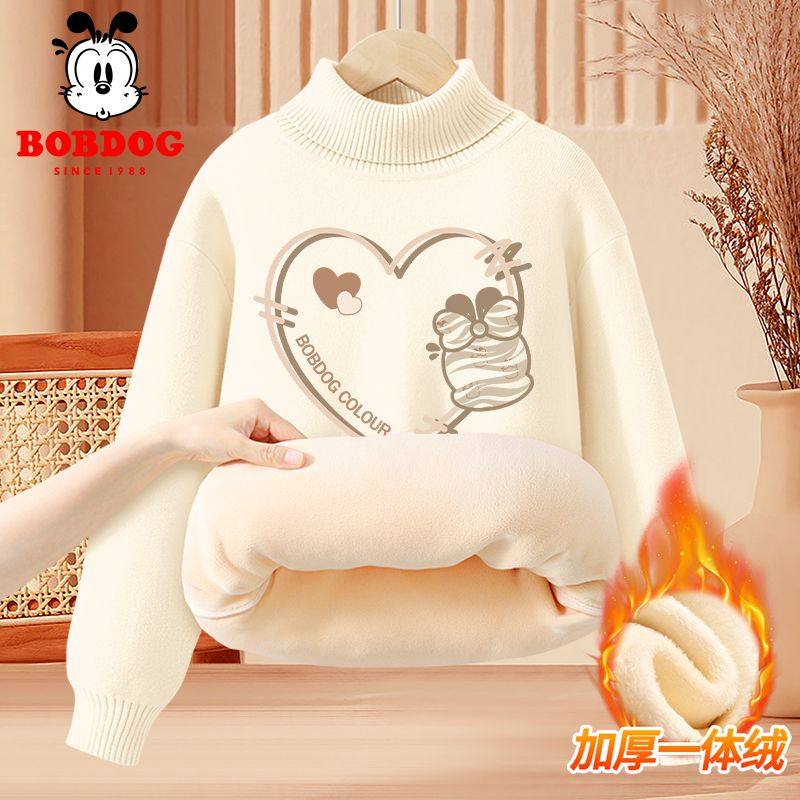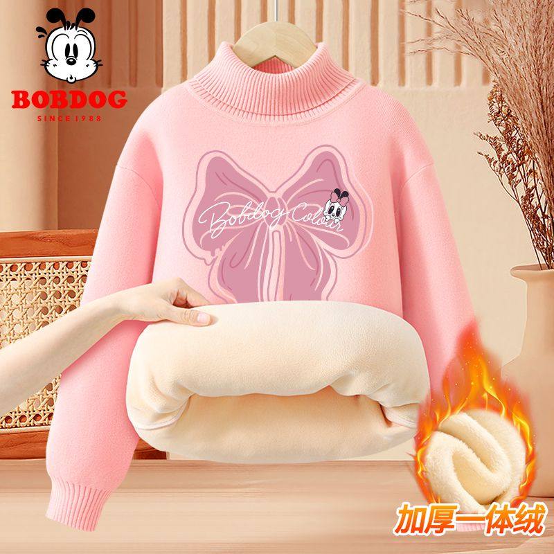 巴布豆女童高领毛衣加绒保暖上衣秋冬2025新款儿童打底衫冬装黑色