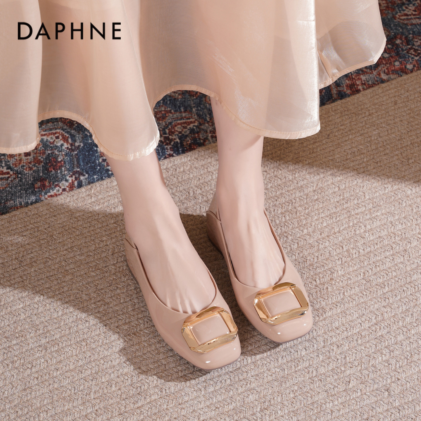 达芙妮裸色单鞋女2026新款春季法式气质妈妈鞋通勤百搭粗跟高跟鞋