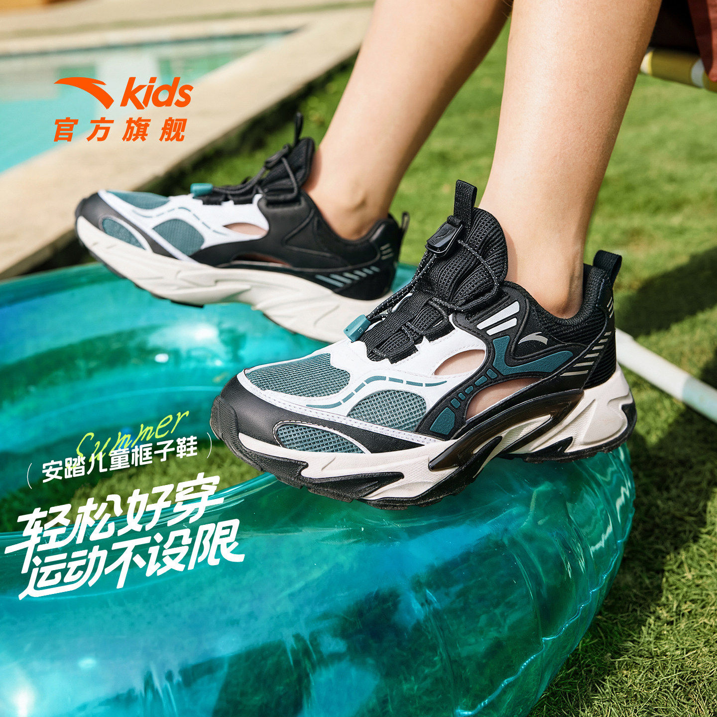 安踏儿童男童透气运动鞋框子凉鞋2026年夏季新款中大童女运动凉鞋