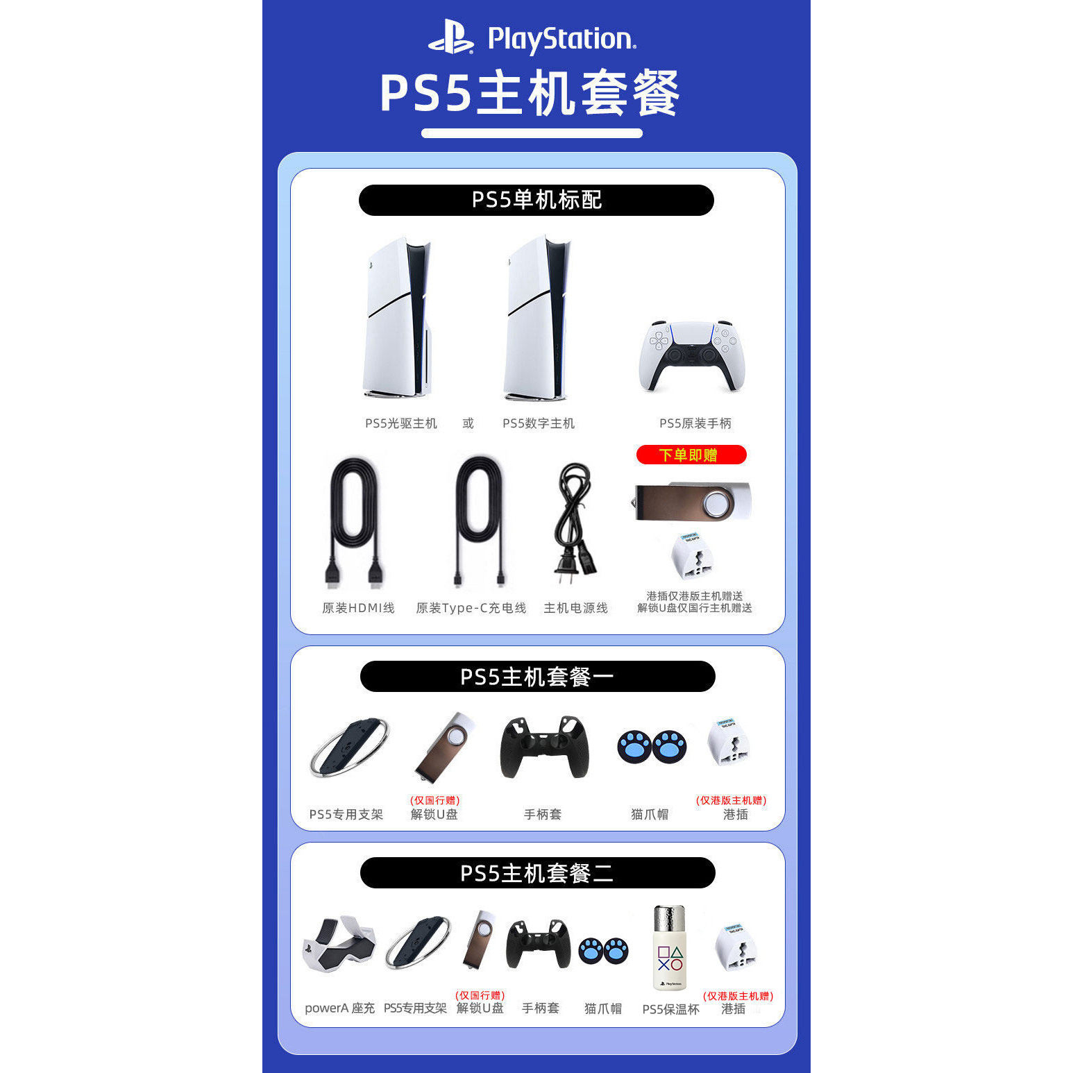索尼PS5游戏机 Slim/Pro 光驱版数字版高清蓝光家用主机国行港版