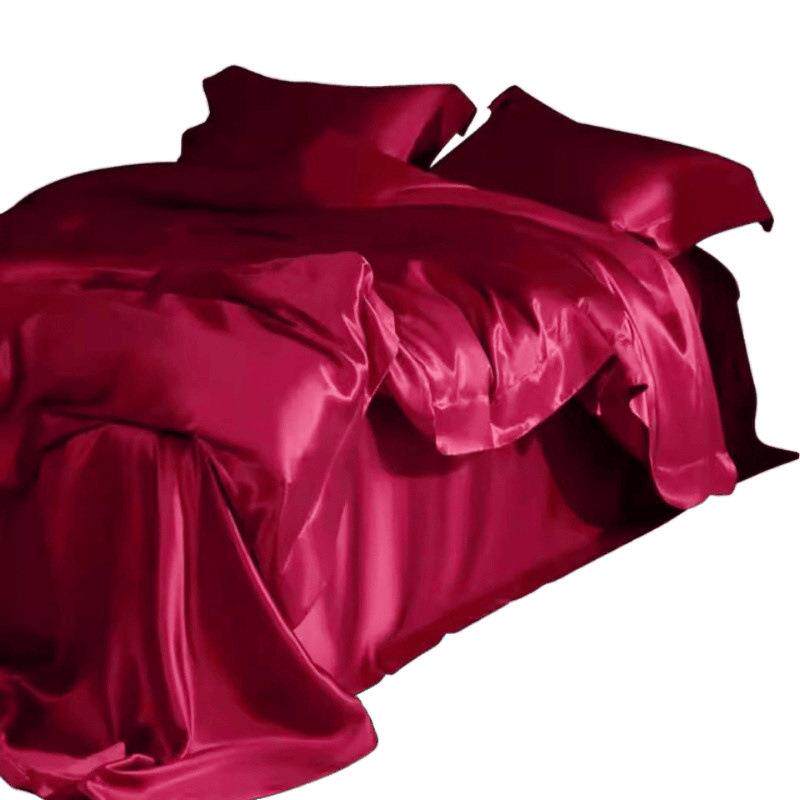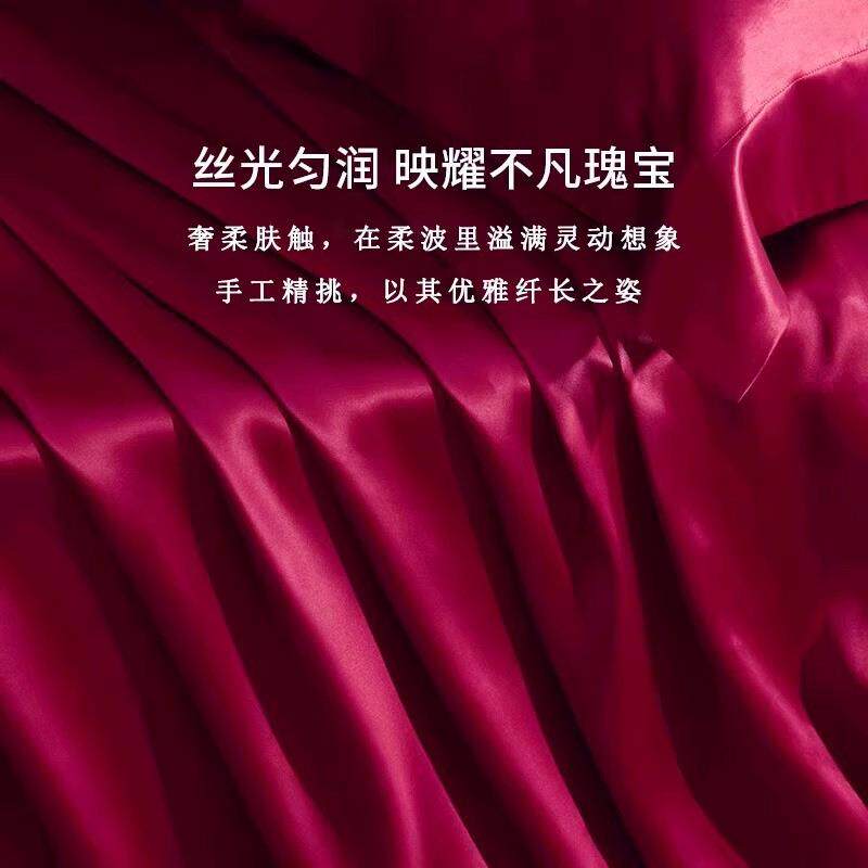 法式轻奢婚庆天丝四件套真丝床单被套大红色结婚婚嫁床品套件