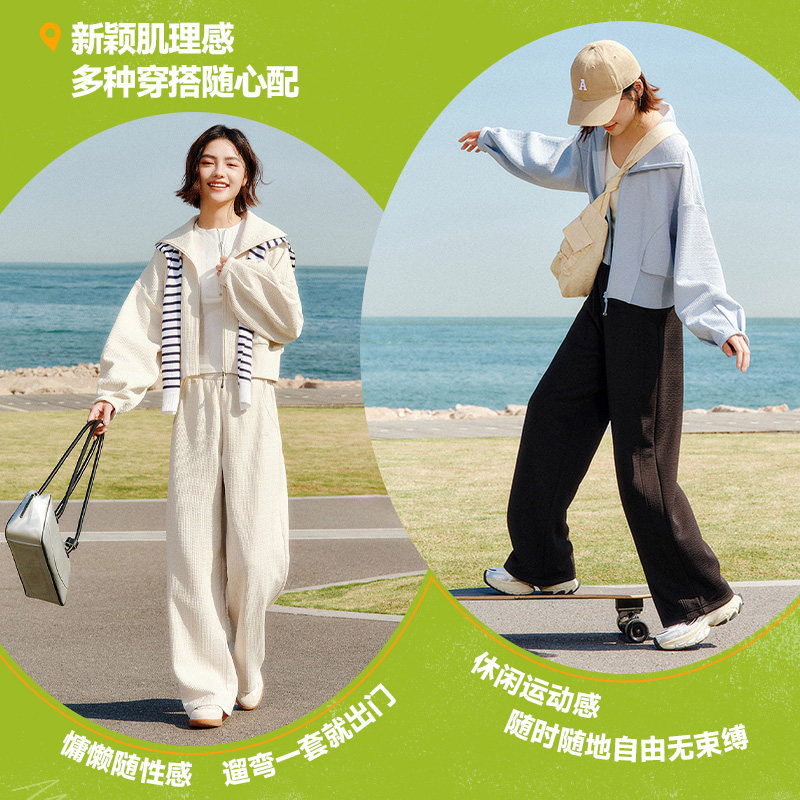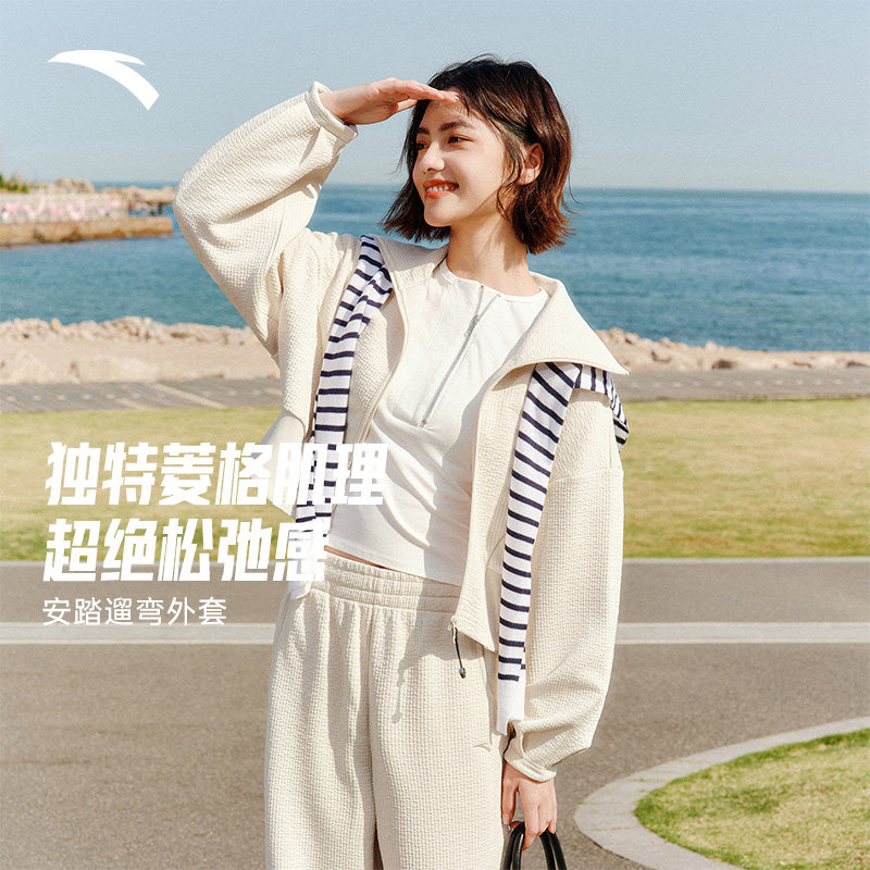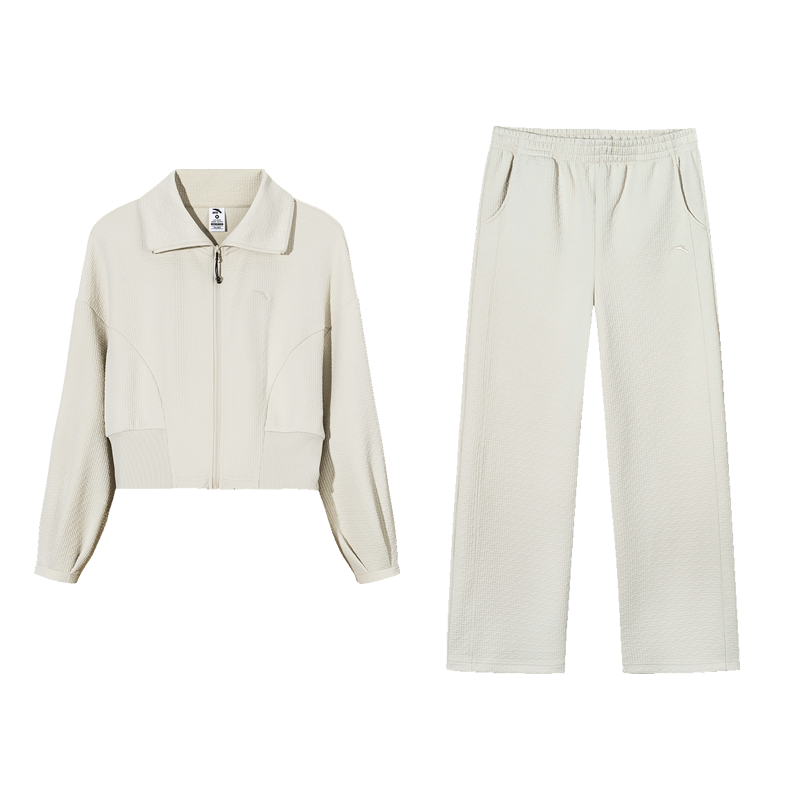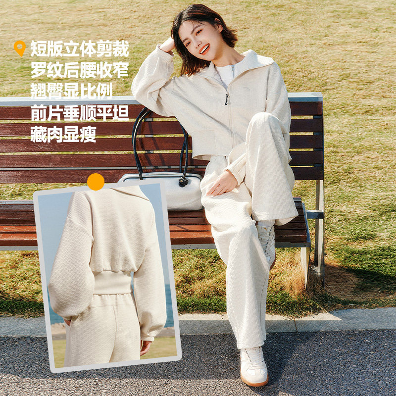 安踏遛弯套装丨慵懒风休闲开衫运动服女士春季百搭外套直筒长裤子