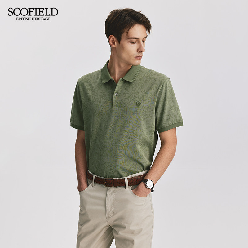 SCOFIELD男士夏季新款商务休闲翻领印花短袖T恤宽松POLO衫