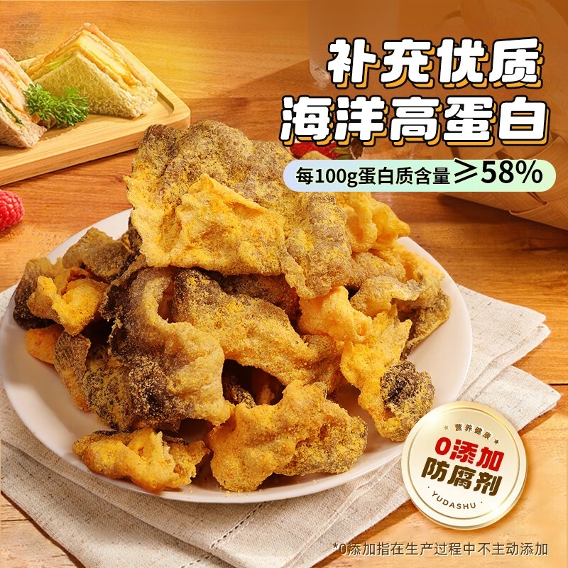 香酥鱼皮脆咸蛋黄炸鱼皮鱼干即食巴沙鱼皮办公室解馋小吃海味零食