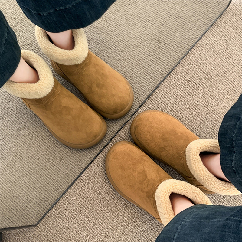 低帮厚底雪地靴女2025新款冬季懒人一脚蹬毛毛棉鞋加绒加厚女鞋子