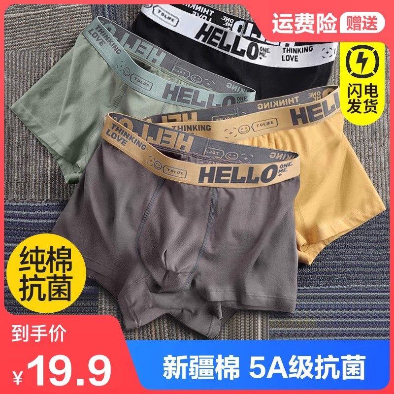 男士内裤男纯棉抗菌平角裤男生四角短裤头透气大码裤衩青少年裤头