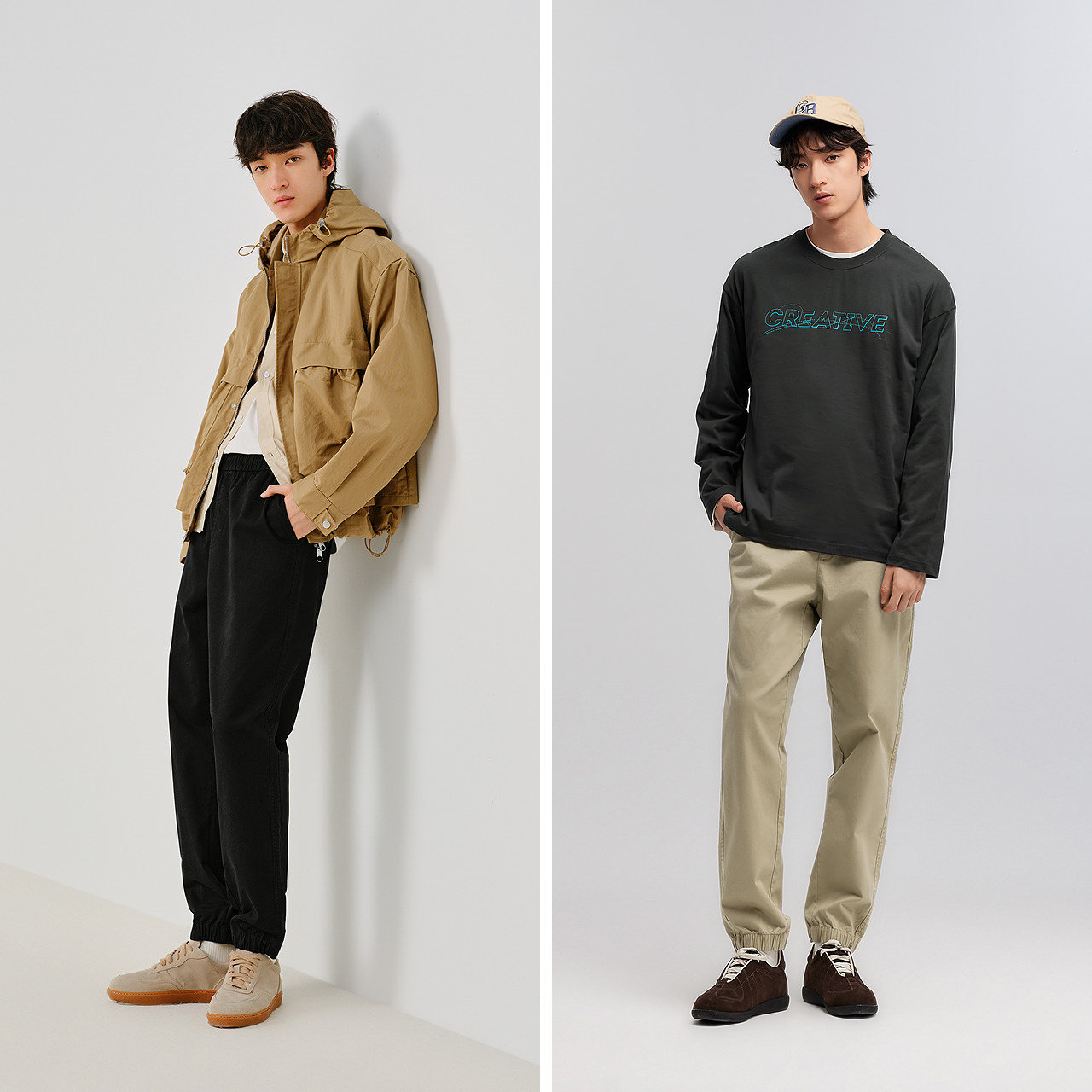森马休闲裤男款纯色锥形裤磨毛小脚裤子通勤基础百搭春季长裤青年