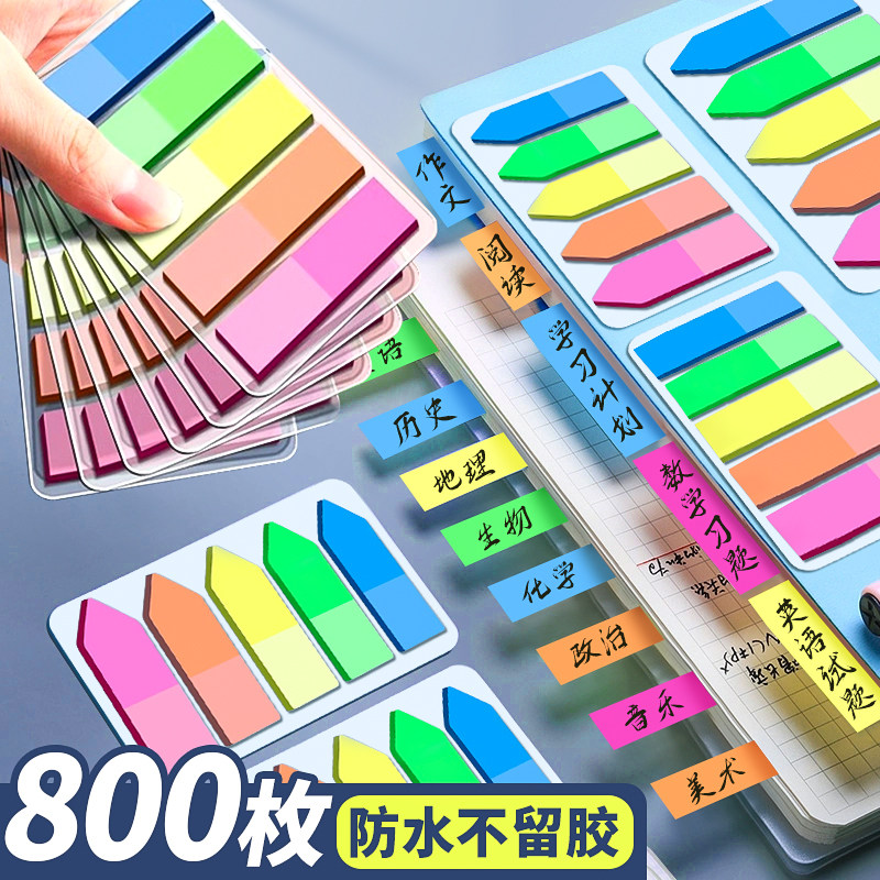 真彩索引贴便利贴标签纸便签贴可书写标记小条塑料书签透明荧光彩色贴纸便签纸办公用可撕防水分类历史重点