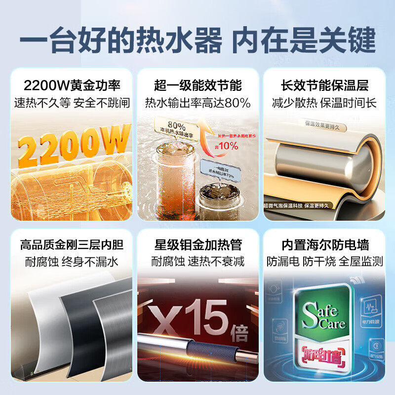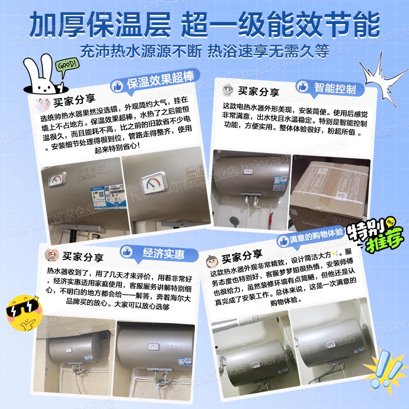 Z海尔热水器电家用60升80L一级能效节能卫生间洗澡储水式统帅LKD
