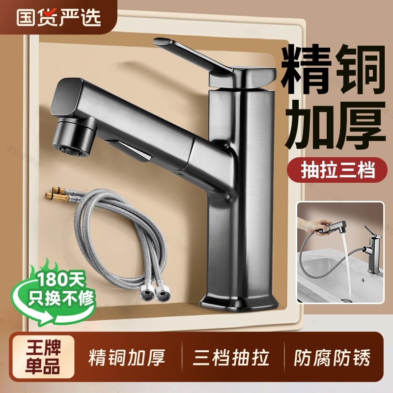 抽拉式水龙头洗脸盆卫生间冷热洗手盆面盆浴室柜洗漱台盆家用全铜