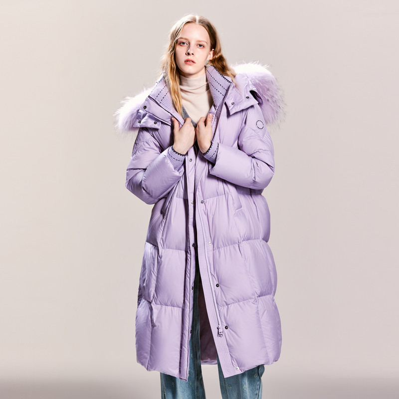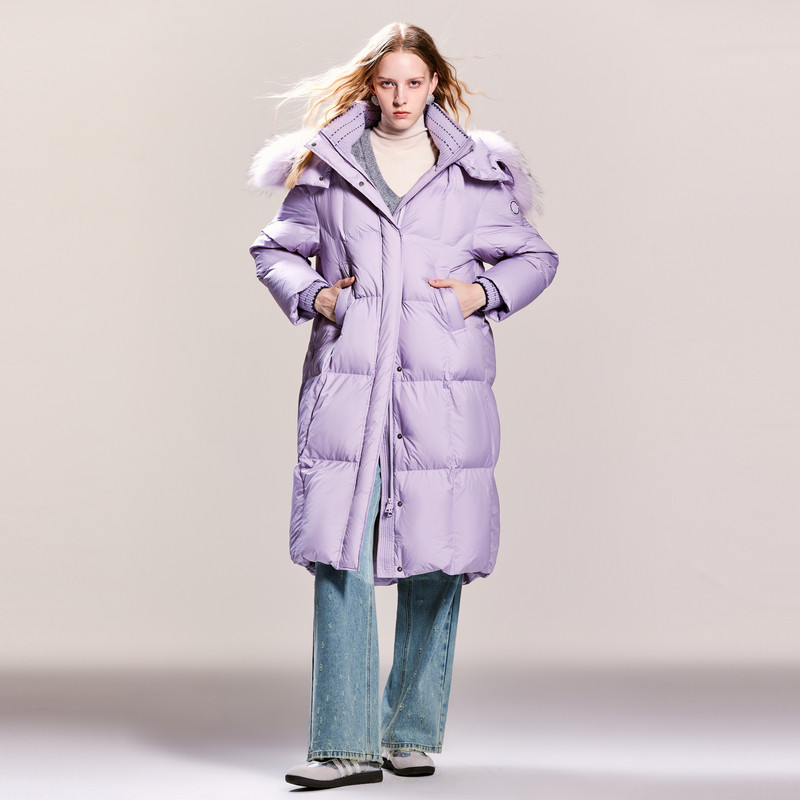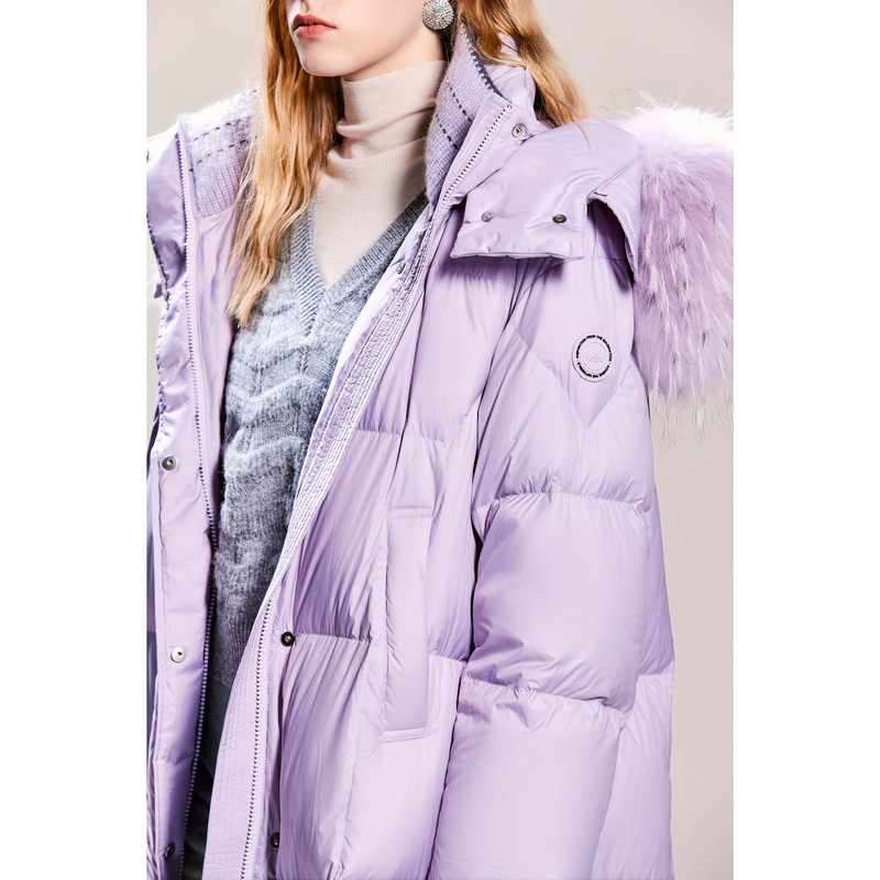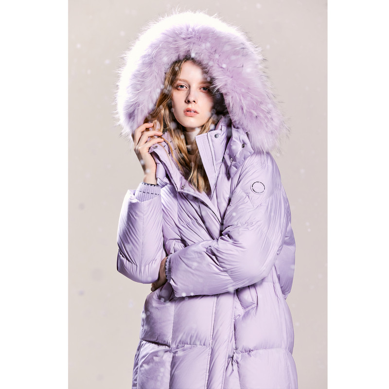 MISSCOCOON可可尼紫色羽绒服女2025年冬季新款中长款鸭绒泡芙外套