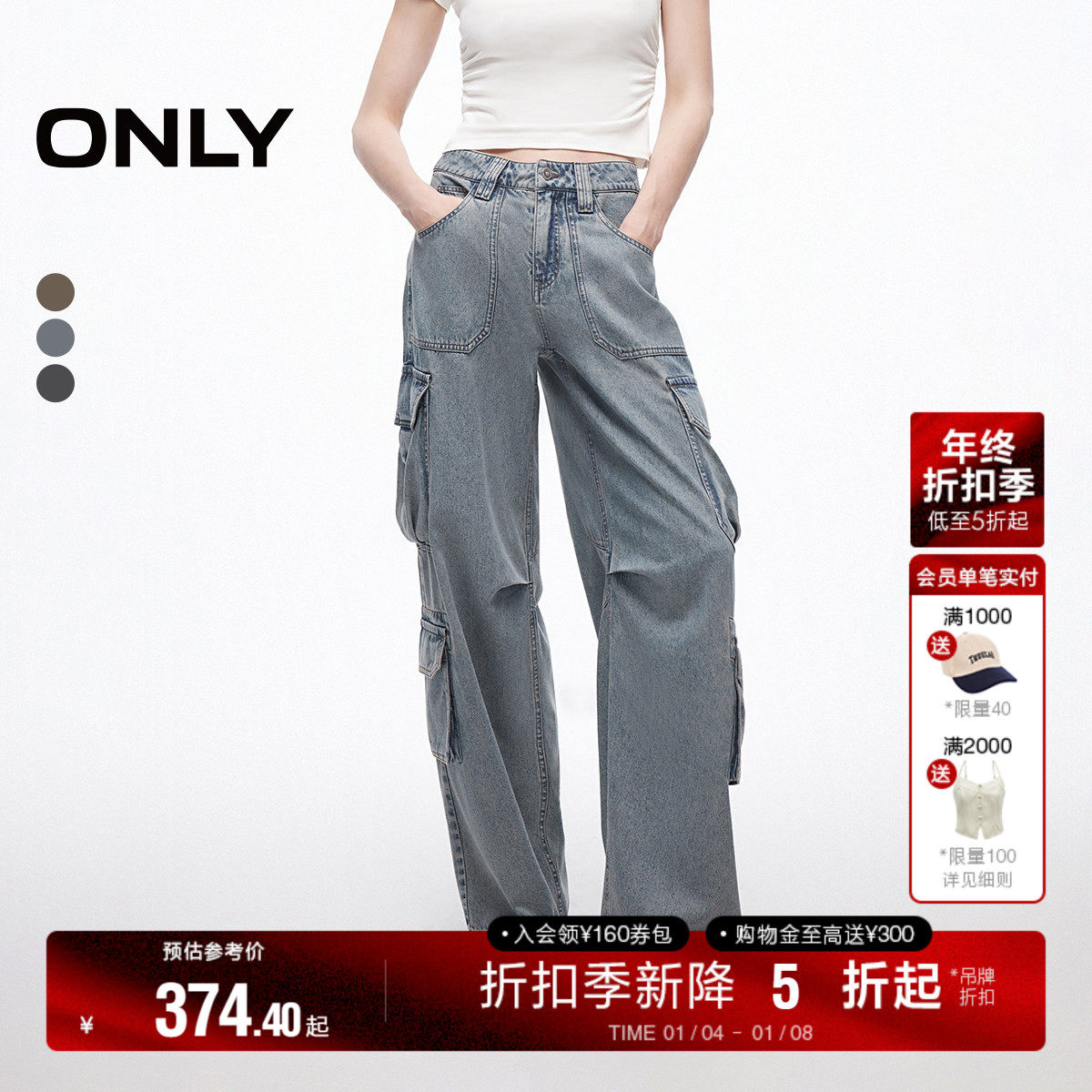 ONLY2025秋季新款工装版型立体口袋装饰宽松阔腿裤长裤牛仔裤女
