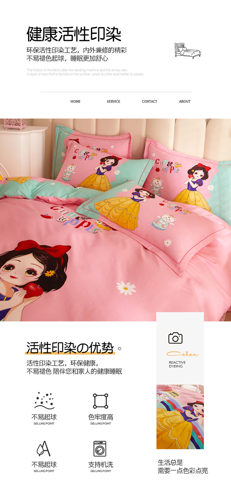 无印良品全棉四件套学生宿舍纯棉卡通儿童被套床单三件套床上用品