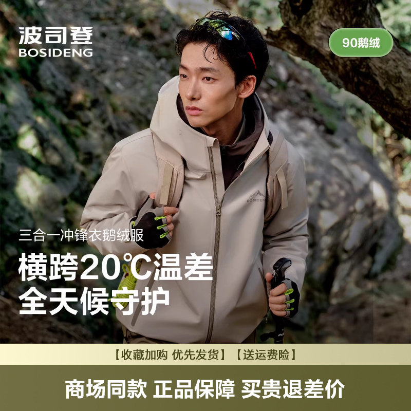 波司登新款羽绒服户外叠变防水硬壳三合一鹅绒冲锋衣男B250331323