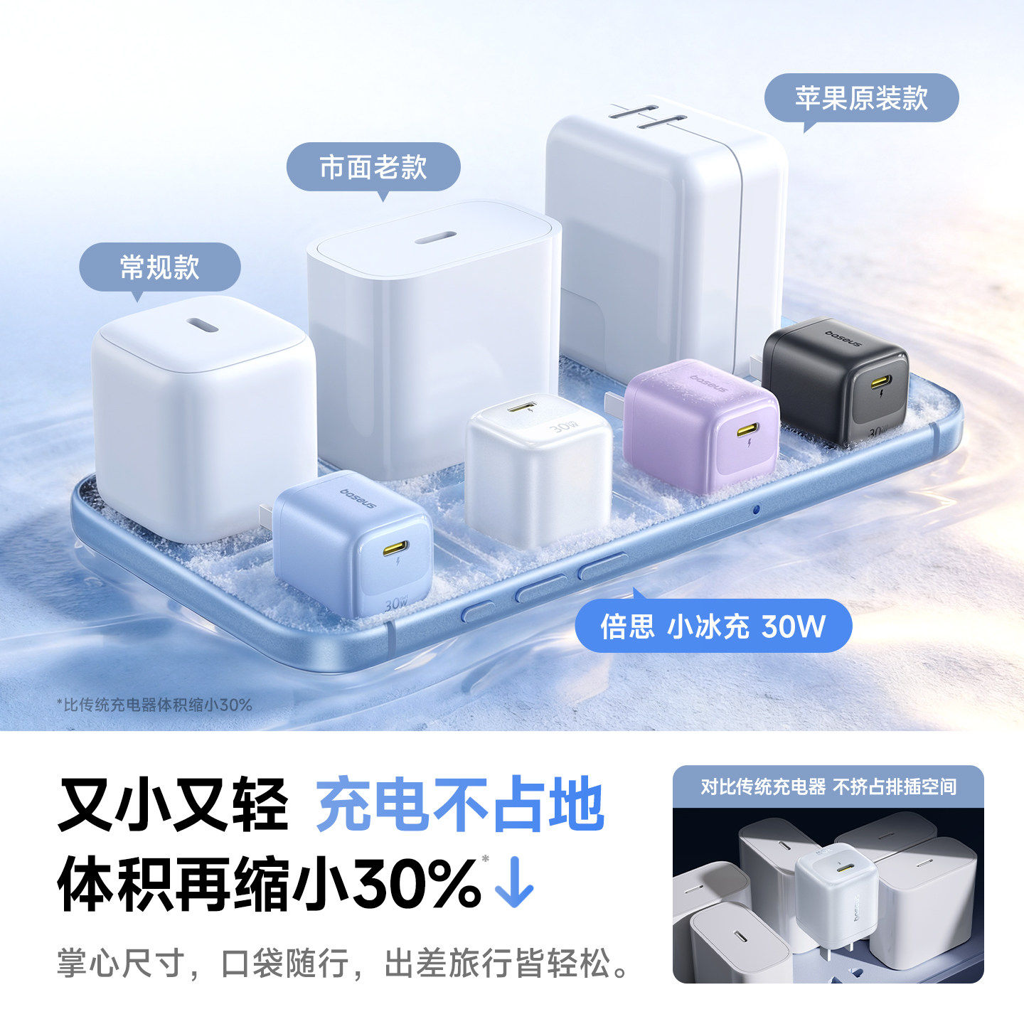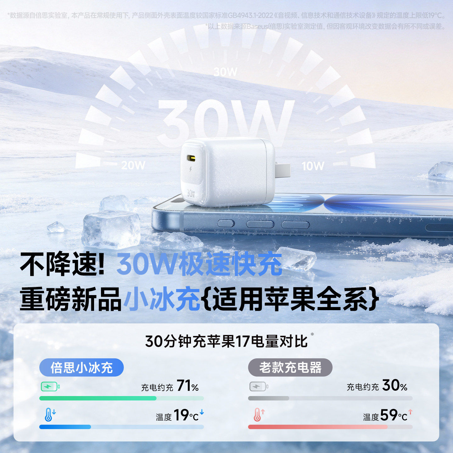 倍思新款小冰充充电器iPhone16充电头15氮化镓14快充头手机pd30w插头20w数据线typec套装13适用苹果17Promax
