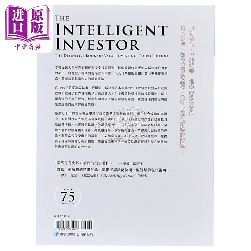 智慧型投资人 价值投资权威著作 75周年纪念 全新译本 港台原版 班杰明葛拉汉 杰森兹威格 寰宇出版【中商原版】