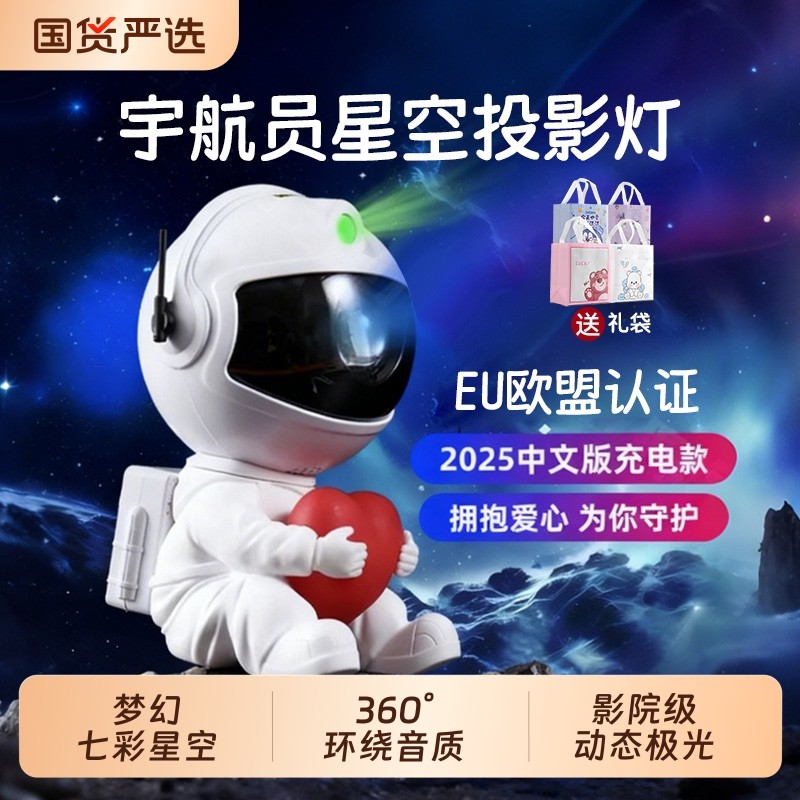 宇航员星空投影灯房间卧室摆件星空顶小夜灯满天星激光氛围灯礼物