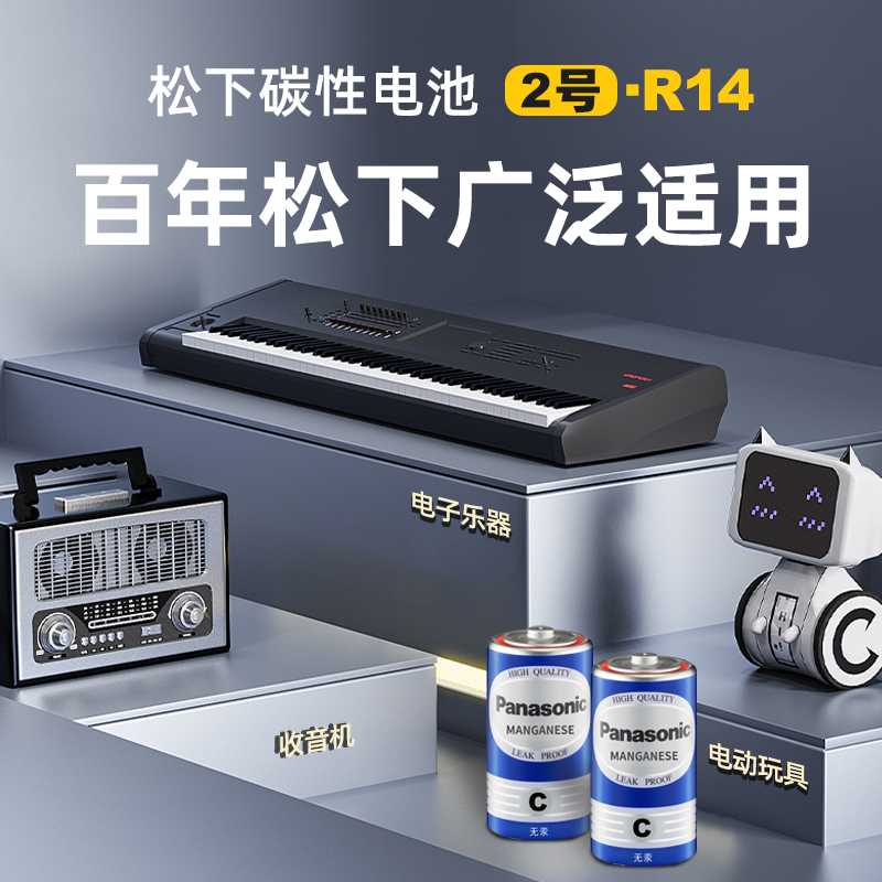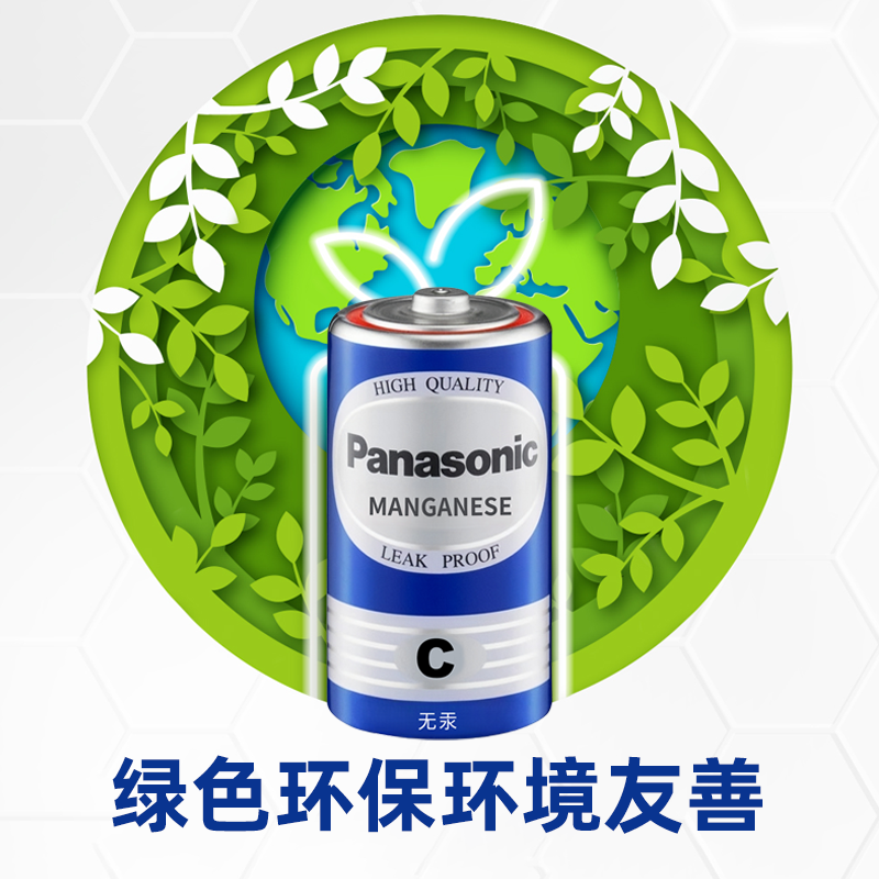 松下2号电池二号1.5V碳性C型R14G面包超人喷水花洒玩具三号通3号手电筒原装正品包邮面包超人花洒扫地机