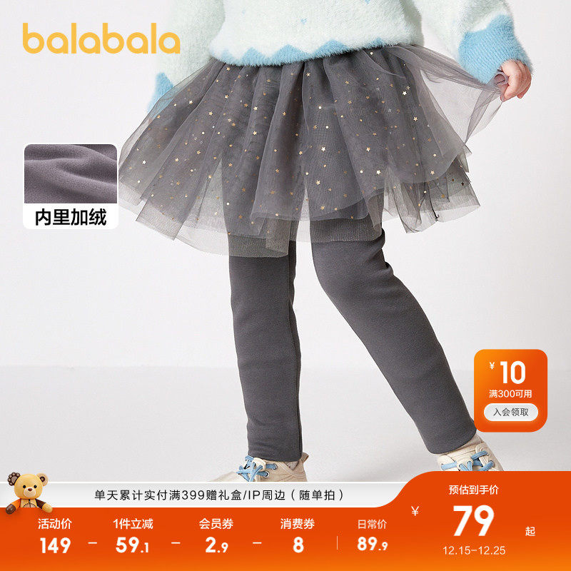 巴拉巴拉童装女童打底裤加绒儿童裤子冬网纱小童宝宝加厚洋气保暖
