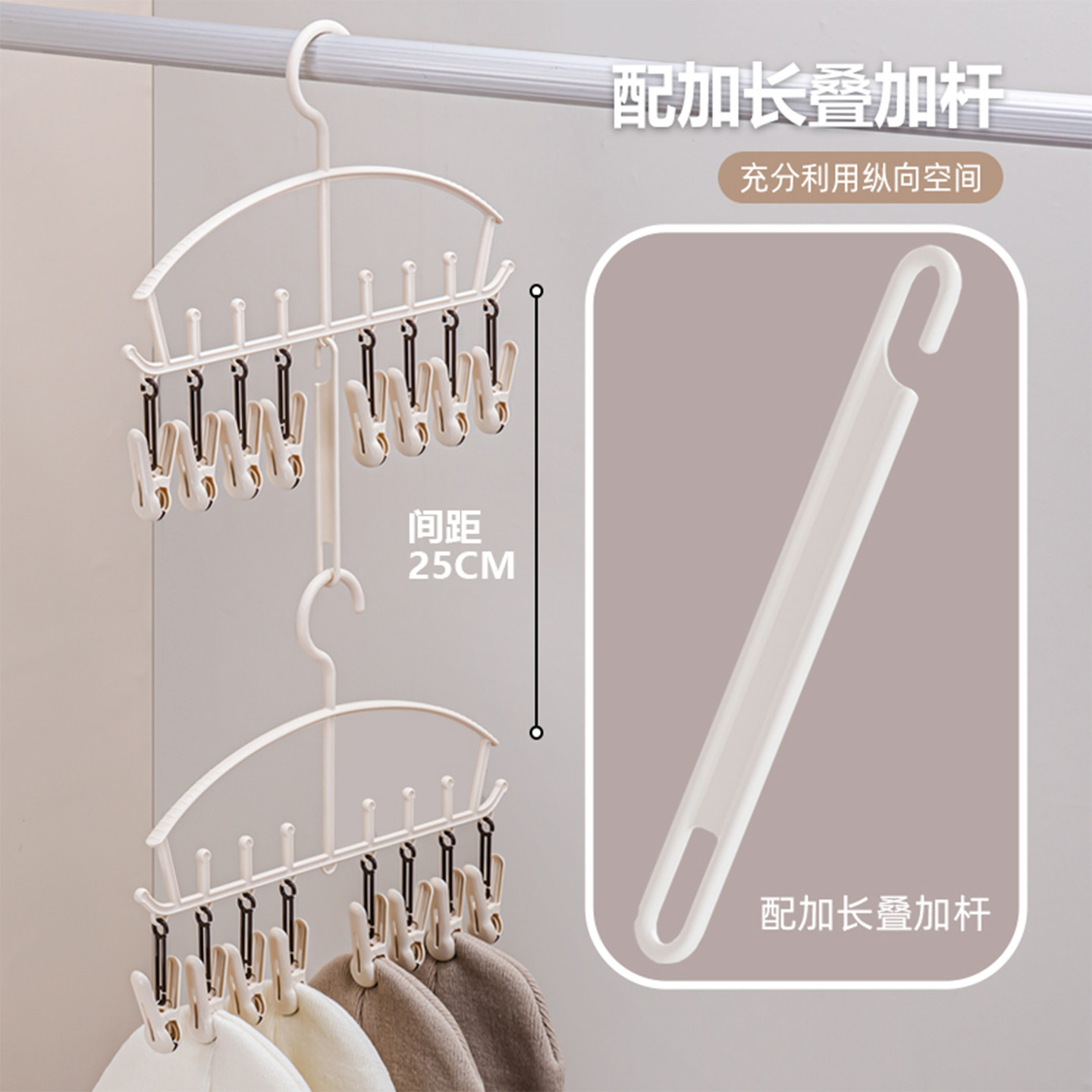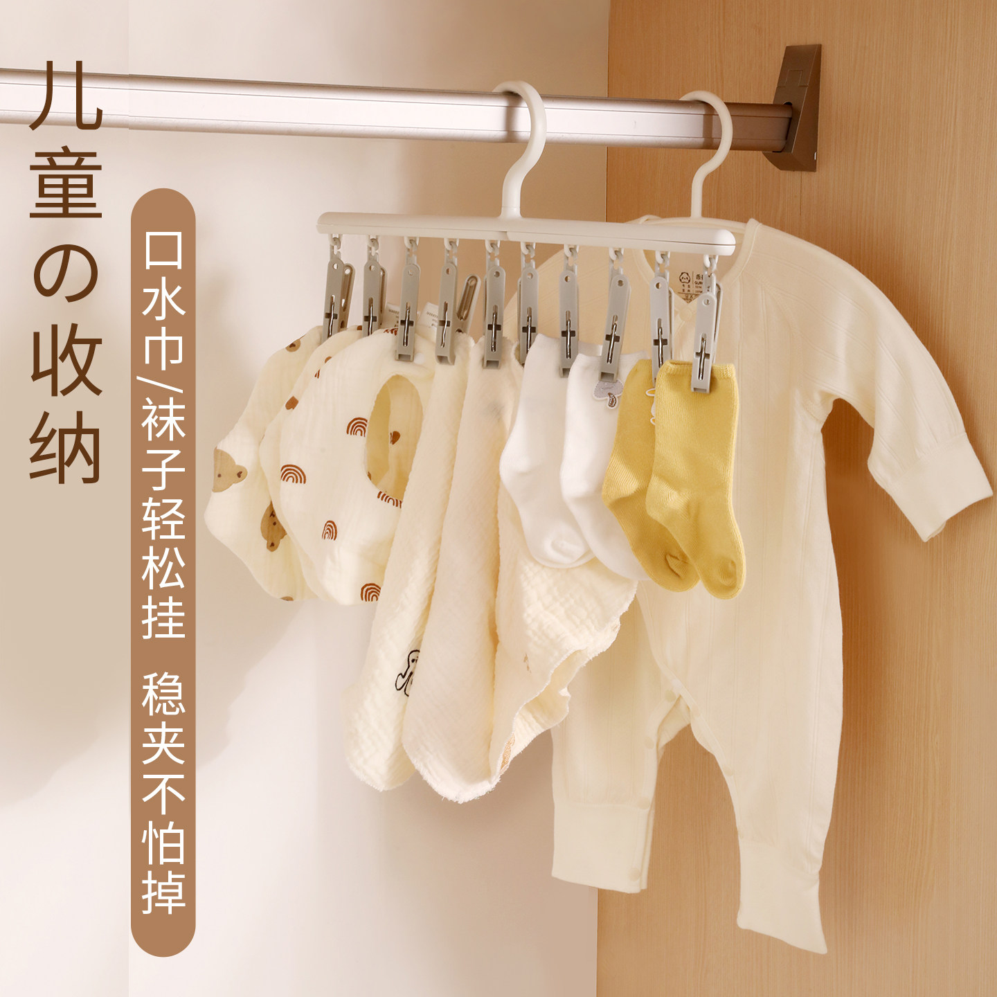 特粗晾袜子衣架多夹子防风家用不锈钢晾衣夹多功能挂钩晒袜子神器