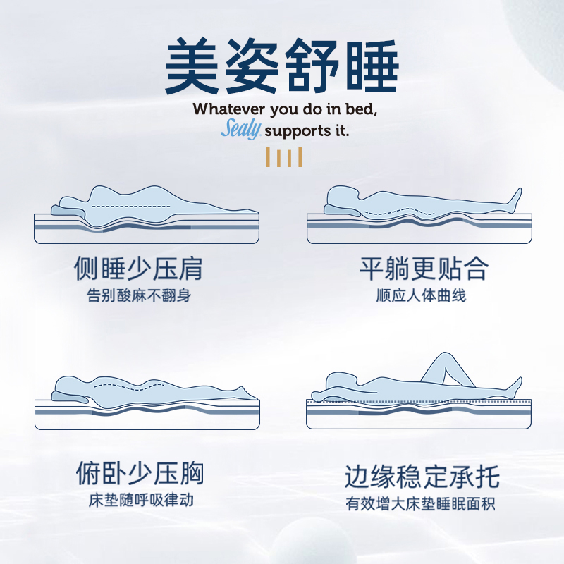 【揽月】Sealy丝涟乳胶美姿弹簧床垫承托海绵家用卧室软垫席梦思