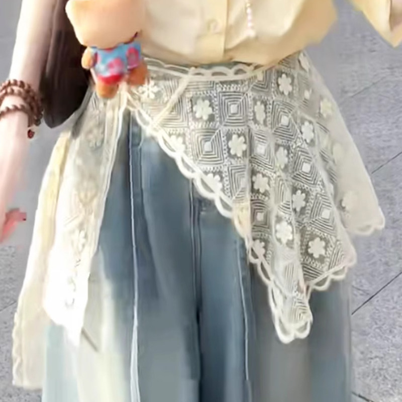 2025腰间丝巾女外搭披肩屁帘叠穿牛仔裤新款配饰蕾丝花边腰带白色