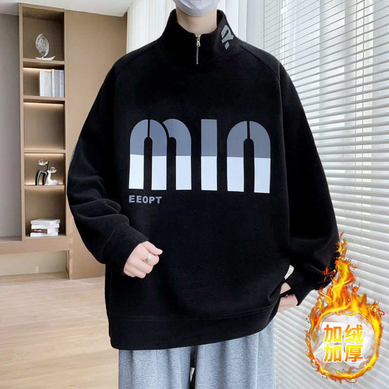 FGNX真维斯男款2025年冬季加绒保暖圆领卫衣潮流印花休闲舒适上衣
