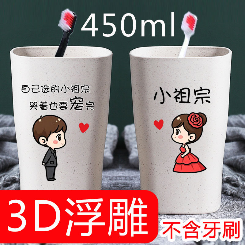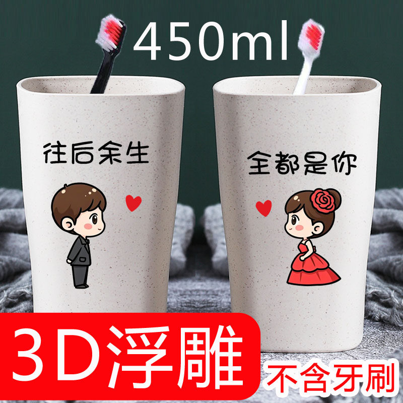 结婚塑料杯饮料杯来客杯漱口杯随手杯防摔情侣水杯亲子杯洗漱牙刷