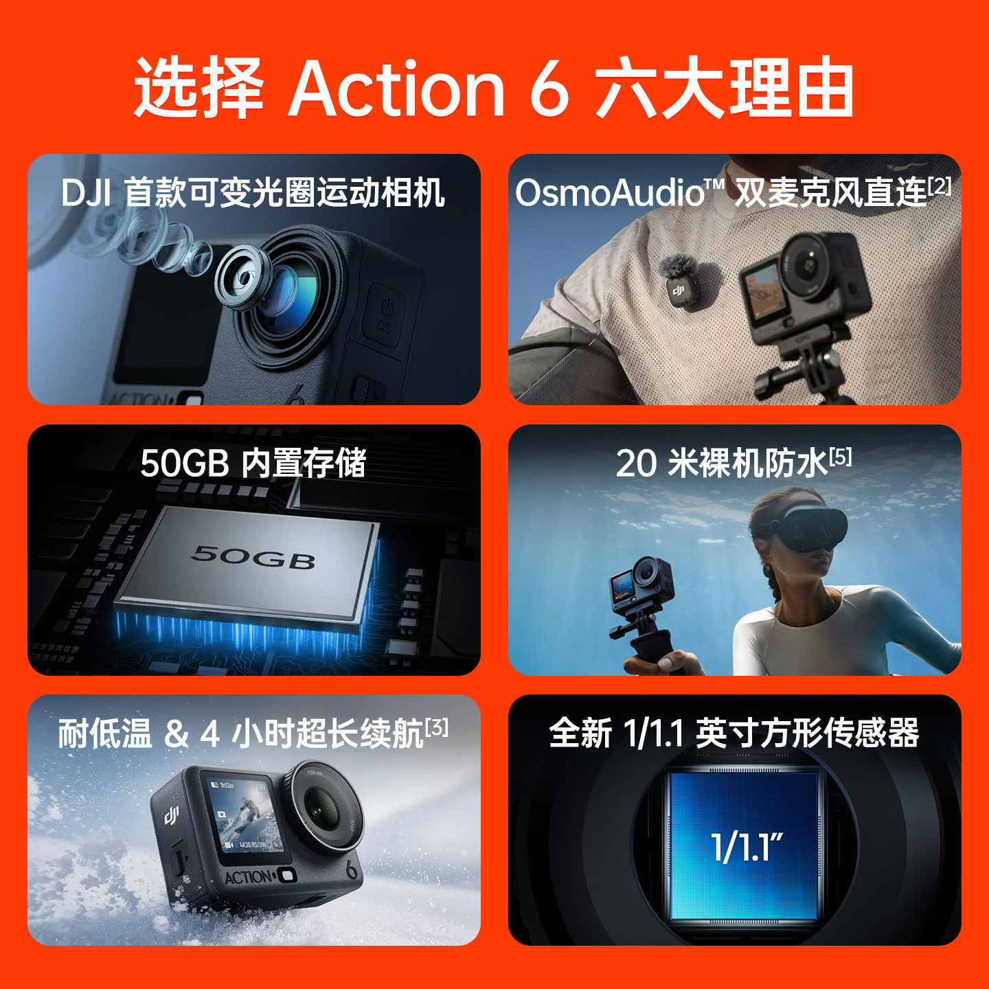 【新品上市】DJI 大疆 Action 6 运动相机Vlog骑行滑雪防抖相机