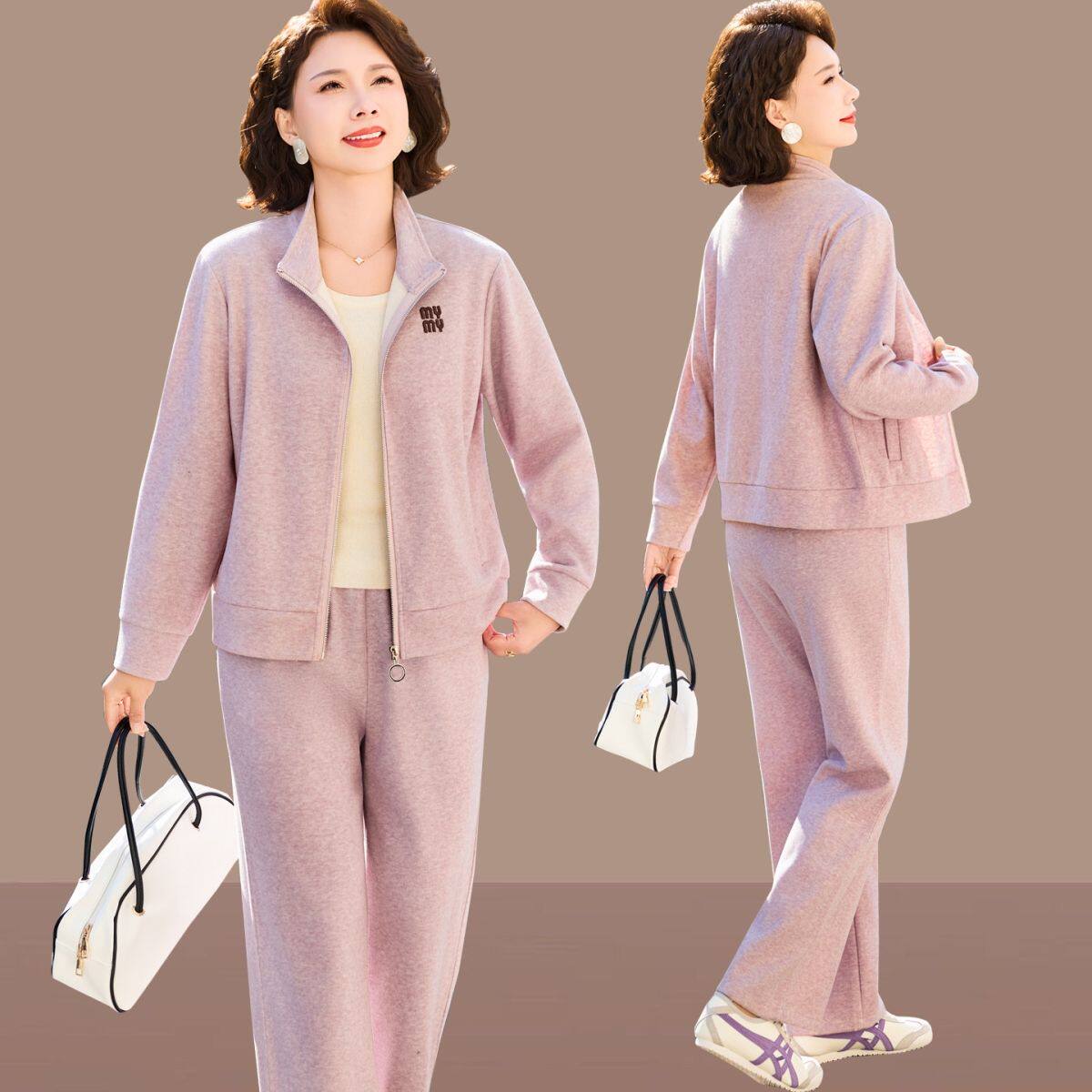 时尚套装中年女春季新款40岁妈妈春装套装休闲两件式洋派上衣春秋