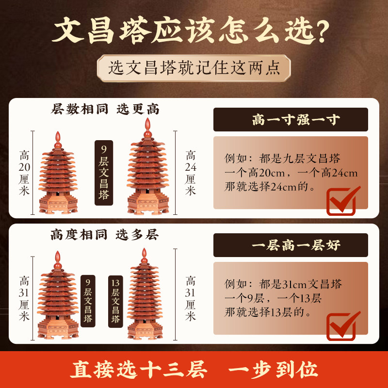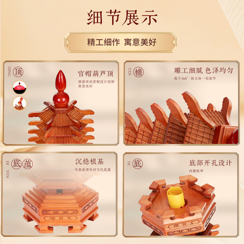 桃木文昌塔摆件纯木质十三层九13层木质客厅上岸挂件旗舰店桌面