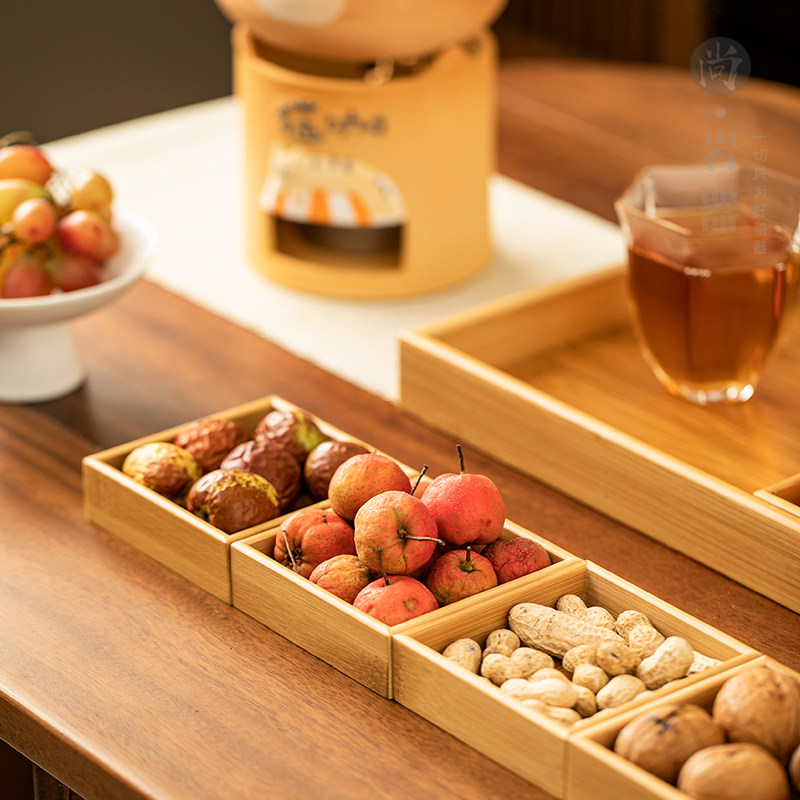 围炉煮茶果干果盘家用客厅茶托盘零食糖果盒分格中式茶点水果年货