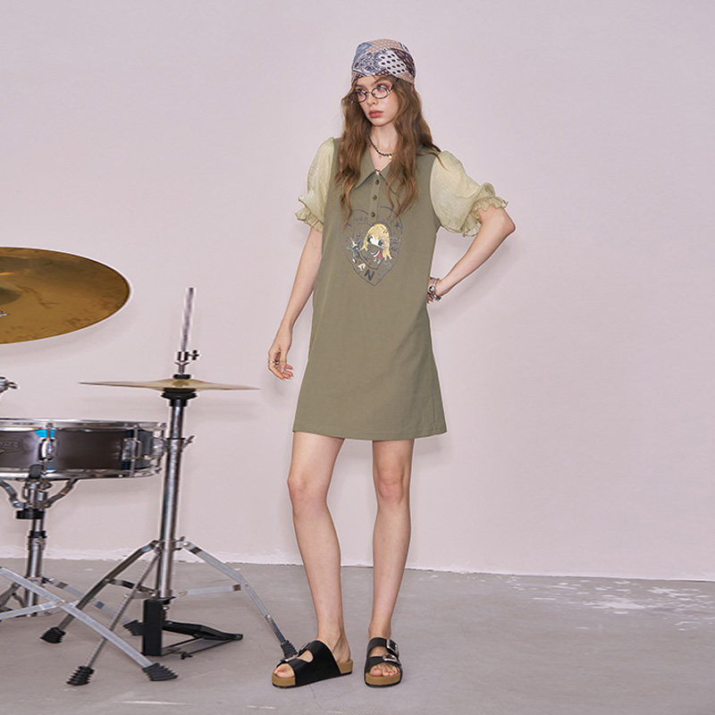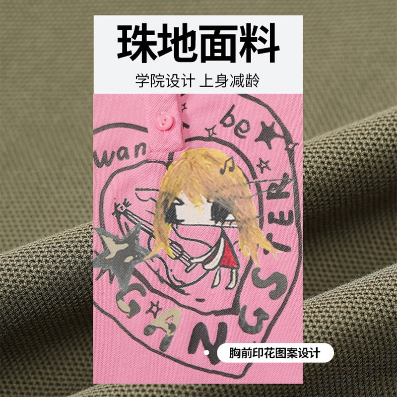 妖精的口袋原创印花polo领连衣裙女2026春夏新款学院风减龄t恤裙