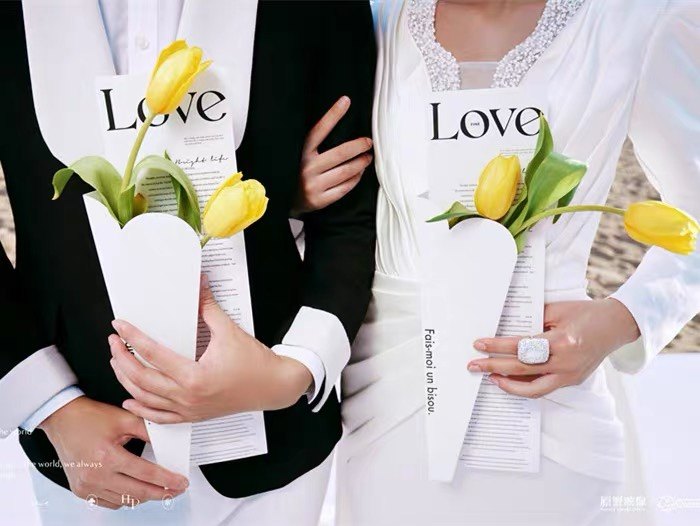 新款外景婚纱旅拍摄影道具 韩式装花袋 手拿包装纸卡片影楼拍照花
