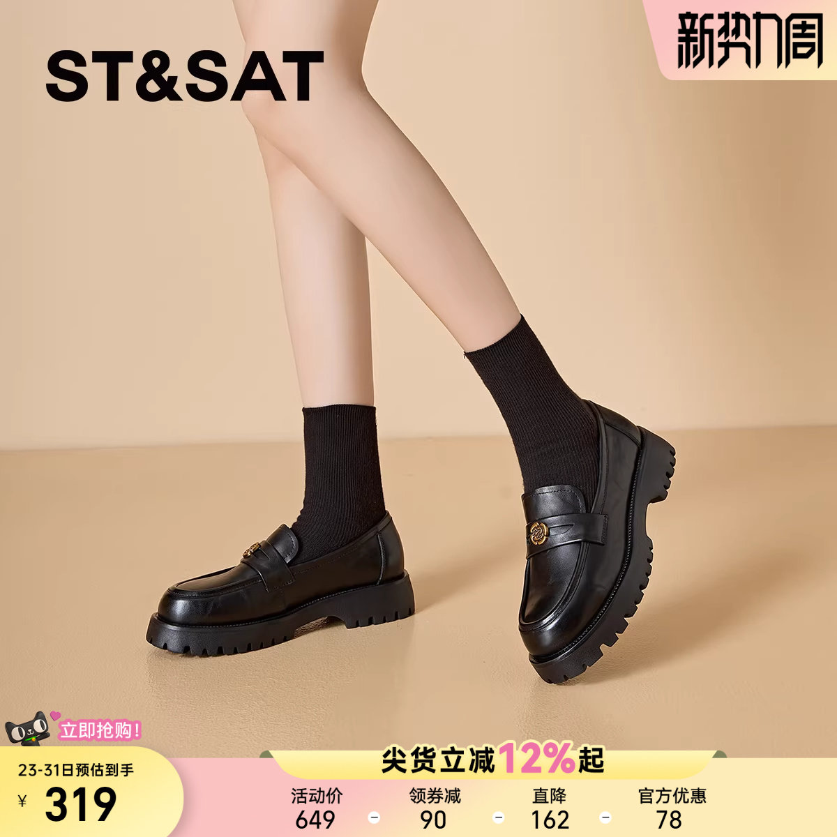 星期六真皮春上新自由通勤风减龄乐福鞋厚底