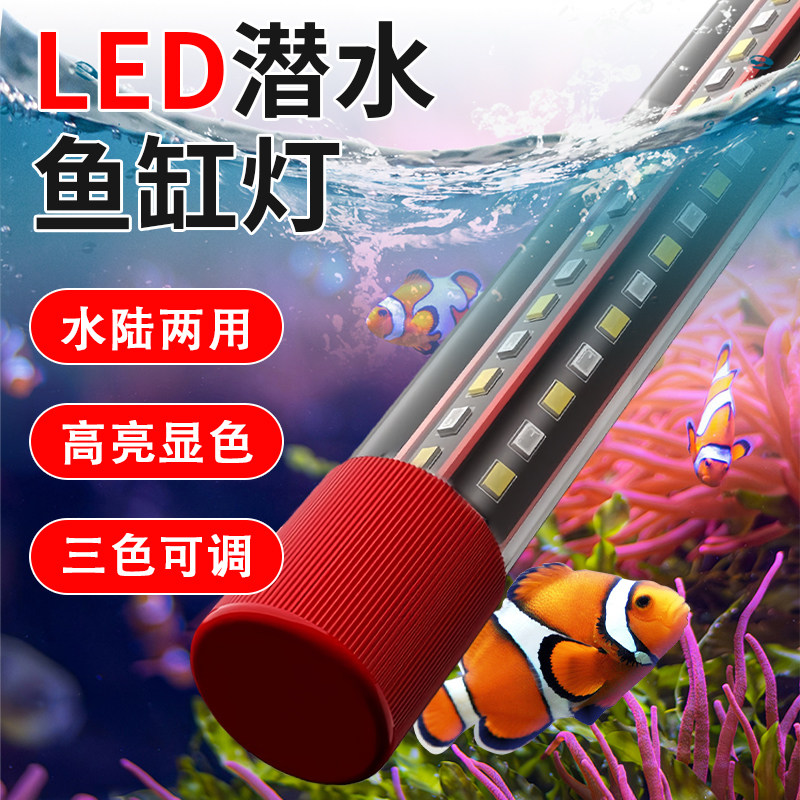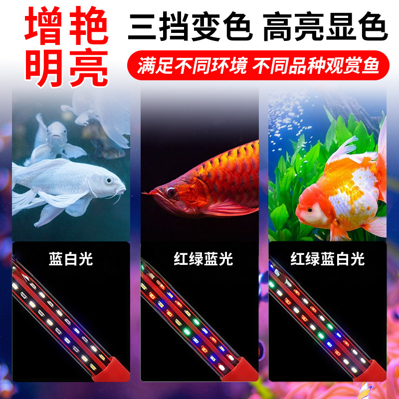 LED鱼缸灯鹦鹉红龙鱼专用水族箱三基色增色增艳观赏防水照明灯管