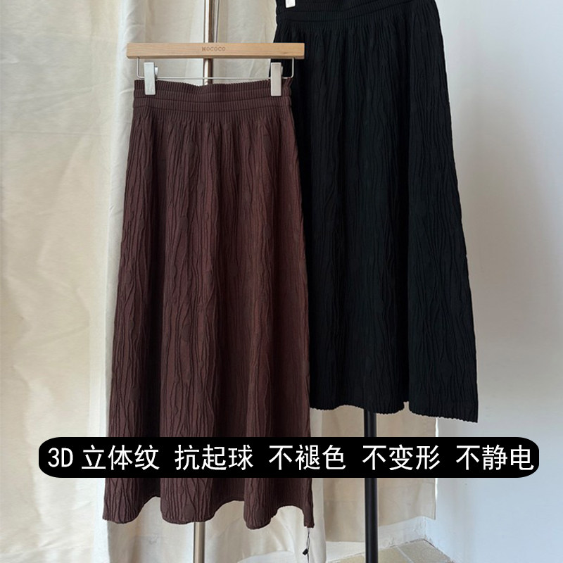 秋冬新款松紧腰针织半身裙垂坠大摆伞裙黑灰色纯色a字半裙中长款