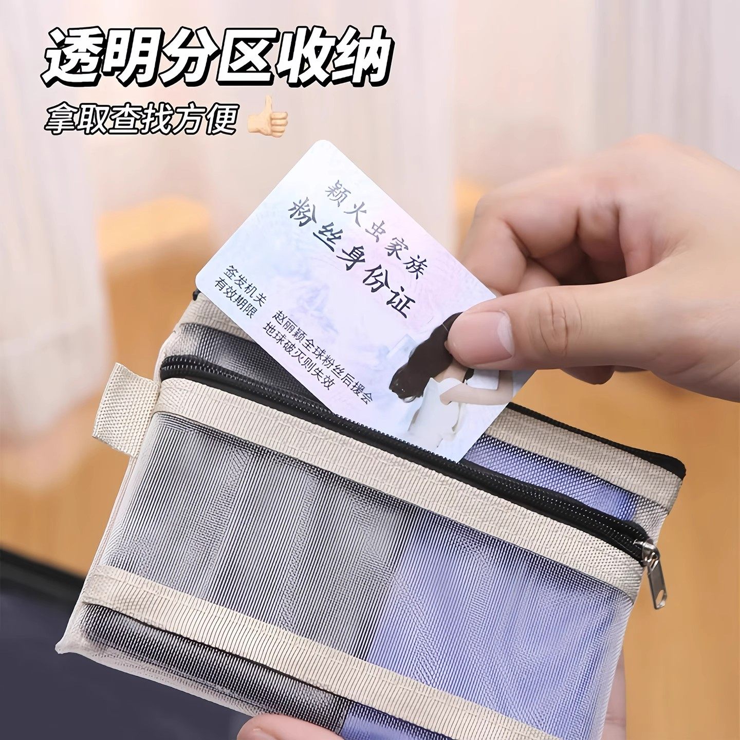透明尼龙网格卡片收纳小包拉链袋收纳硬币零钱身份证银行卡收纳袋